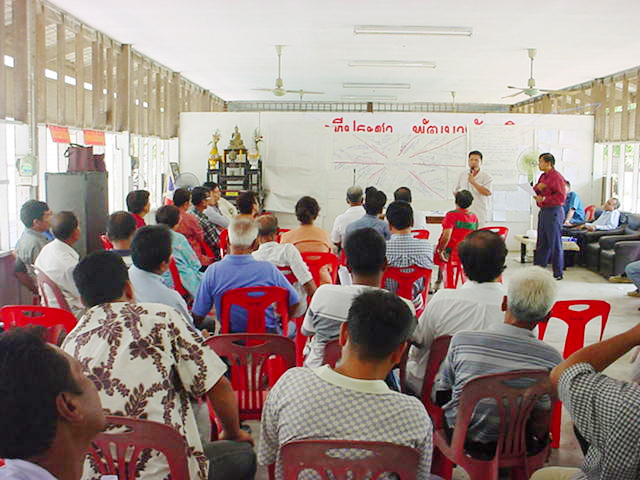 • ระดับชุมชน เป็นการกำหนดเป้าหมายหรือวิสัยทัศน์ร่วมกันและสร้างการมีส่วนร่วม ดึงศักยภาพของแต่ละคนมาช่วยกันพัฒนา