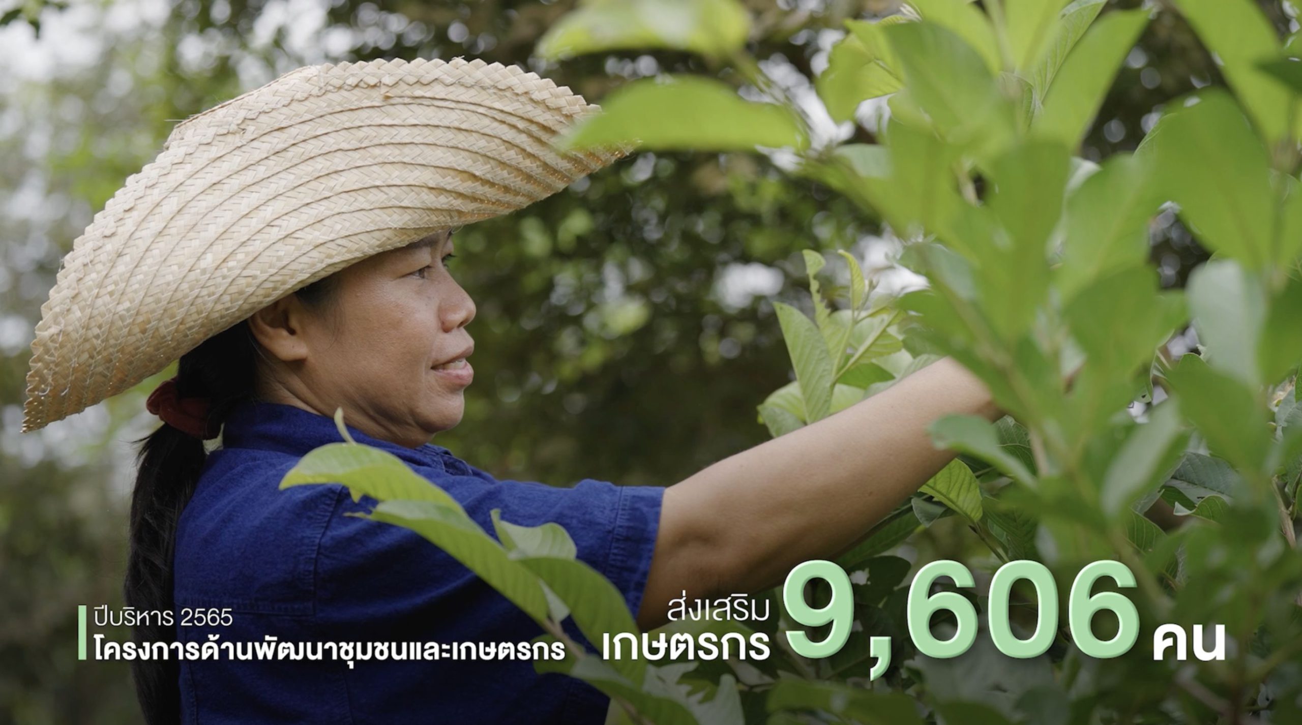 ขับเคลื่อนงานด้านการสร้างคุณค่าแก่สังคมและผู้ด้อยโอกาสให้เข้าถึงปัจจัยพื้นฐานของการดำรงชีวิตอยู่ได้อย่างยั่งยืน โดยการน้อมนำเอาศาสตร์พระราชามาเผยแพร่ เพื่อยกระดับและพัฒนาอาชีพเกษตรกรรมสู่วิสาหกิจชุมชน  9,600 คน ได้รับการส่งเสริมอาชีพ สร้างรายได้ และช่วยเพิ่มมูลค่าผลผลิตของเกษตร