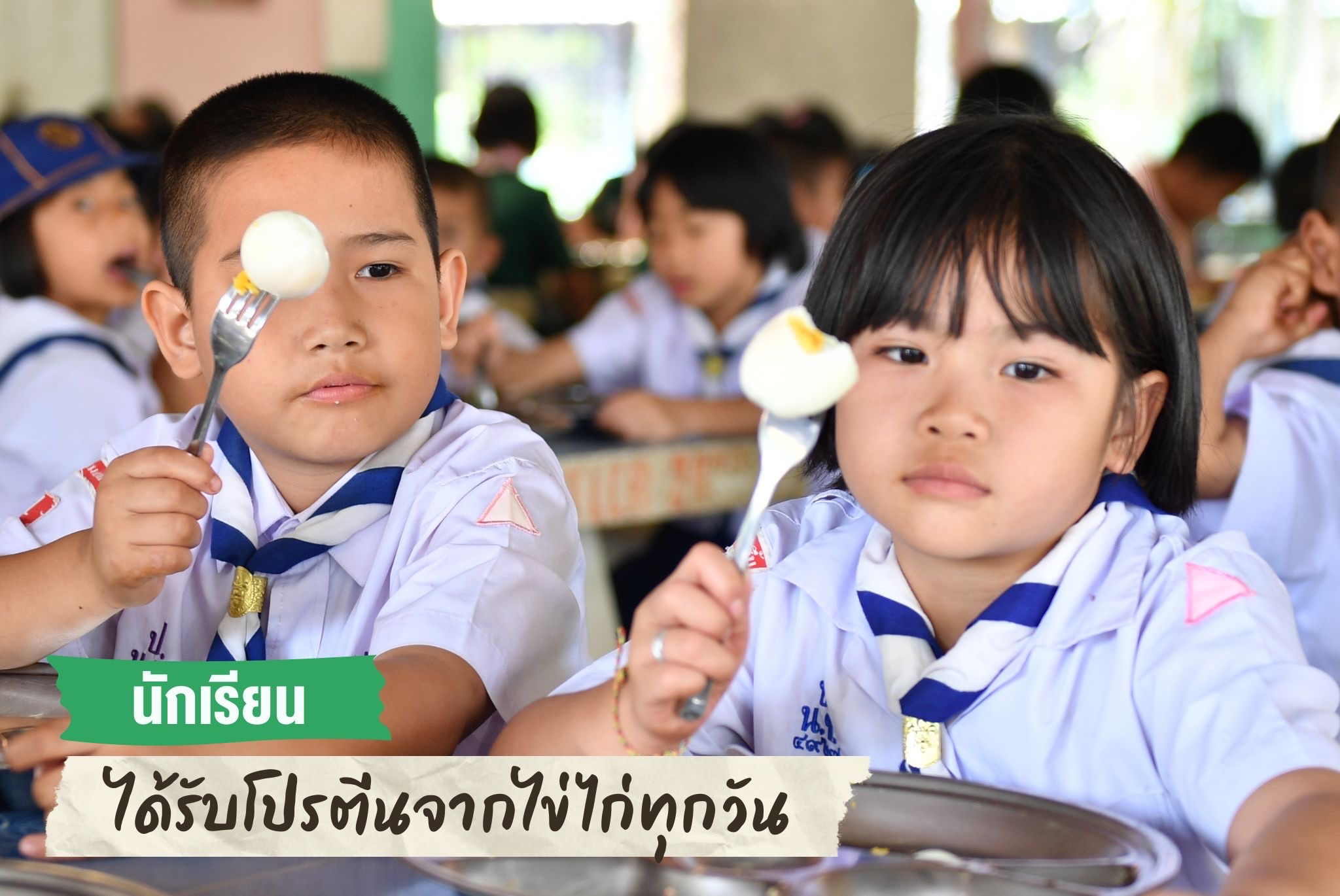🥚 นักเรียนได้รับ “โปรตีน” จากการบริโภคไข่ไก่ทุกวัน เพื่อเสริมสร้างร่ายกายให้เติบโตอย่างสมบูรณ์ แข่งแรง สมวัย ลดภาวะทุพโภชนาการในเด็กไทย