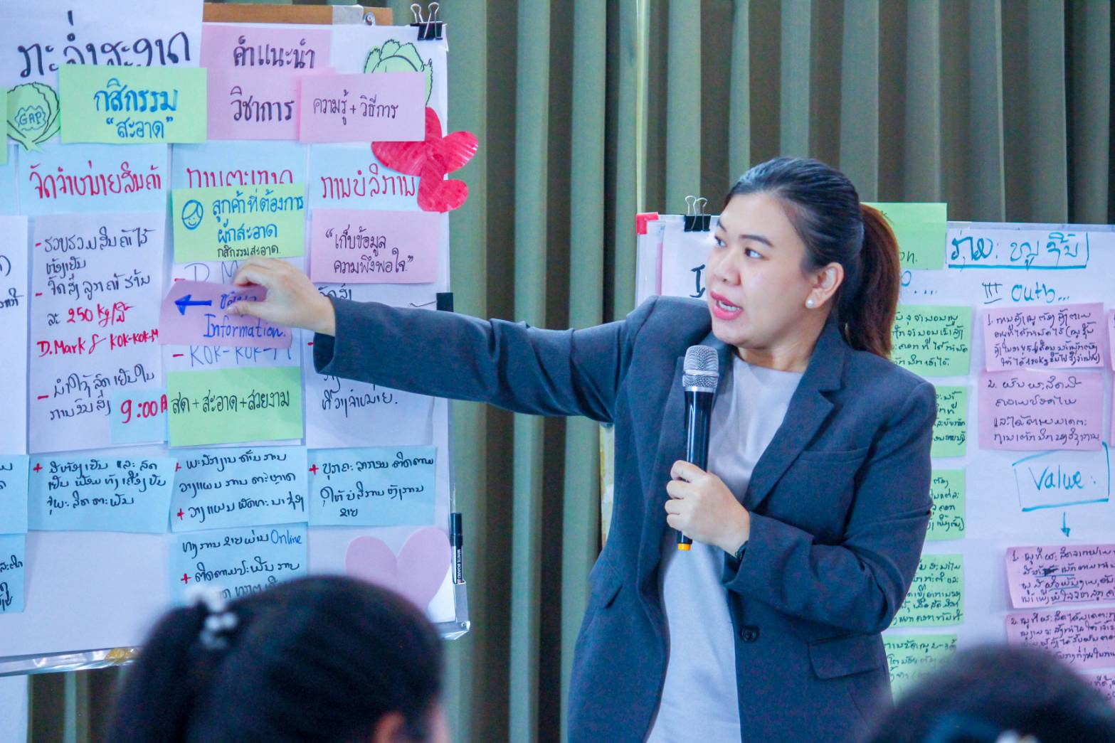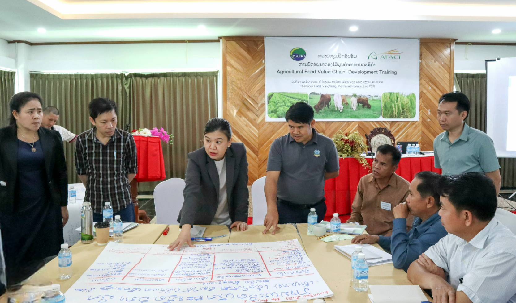 ในครั้งนี้ ได้แลกเปลี่ยนองค์ความรู้วิธีการใช้เครื่องมือ “การวิเคราะห์โซ่คุณค่า (Value Chain Analysis)” สำหรับสินค้าเกษตรที่สำคัญ และได้นำเสนอตัวอย่างการพัฒนาโครงการด้านความยั่งยืน ของหน่วยงานพัฒนาความยั่งยืนภาครัฐและกิจการสัมพันธ์ เครือเจริญโภคภัณฑ์ ได้แก่ โครงการสบขุ่นโมเดล อ.ท่าวังผา จ.น่าน ของวิสาหกิจชุมชนสร้างป่า สร้างรายได้บ้านสบขุ่น, โครงการยกระดับการผลิตผักสู่ Veggie Hub ของวิสาหกิจชุมชนผู้ปลูกผักปลอดภัยบ้านโคกล่าม-แสงอร่าม อ.หนองวัวซอ จ.อุดรธานี และการดำเนินงานของสำนักงานด้านความยั่งยืนและพัฒนาชุมชน จ.น่าน เครือเจริญโภคภัณฑ์ ที่มุ่งเป้าพัฒนาสินค้าเกษตรจากวิสาหกิจชุมชนทั้ง 15 อำเภอใน จ.น่าน เป็นกรณีศึกษาประกอบการถ่ายทอดความรู้ด้วย โดยมีผู้เข้าร่วมจำนวน 60 คน จากหน่วยงานต่าง ๆ ได้แก่ สำนักงานเกษตรและป่าไม้ จากแขวงหลวงพระบาง แขวงเชียงขวาง แขวงคำม่วน และแขวงจำปาสัก นักวิจัยและเครือข่ายพันธมิตรจากกรมแผนงานและความร่วมมือ กรมส่งเสริมกสิกรรมและสหกรณ์ กรมคุ้มครองและพัฒนาที่ดินกสิกรรม คณะเกษตรศาสตร์ มหาวิทยาลัยแห่งชาติลาว ศูนย์ฝึกอบรมการเกษตรและการพัฒนาชนบทลาว-เกาหลี ตลอดจนผู้แทนนักธุรกิจเกษตรด้านการผลิตผักอินทรีย์ Tam Mang Organic Cooperative