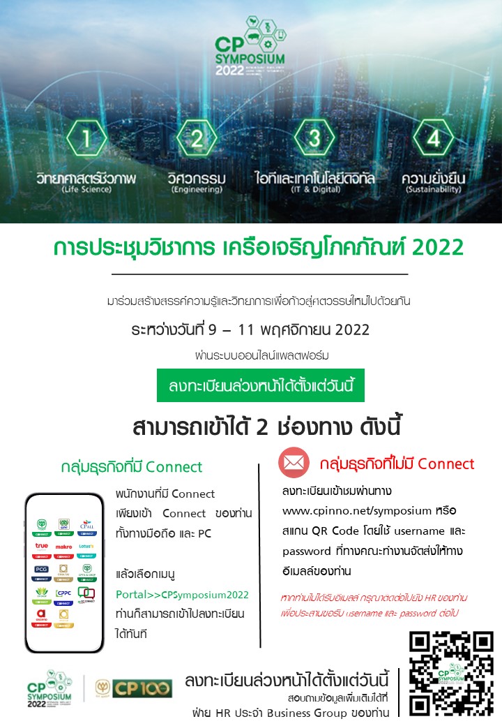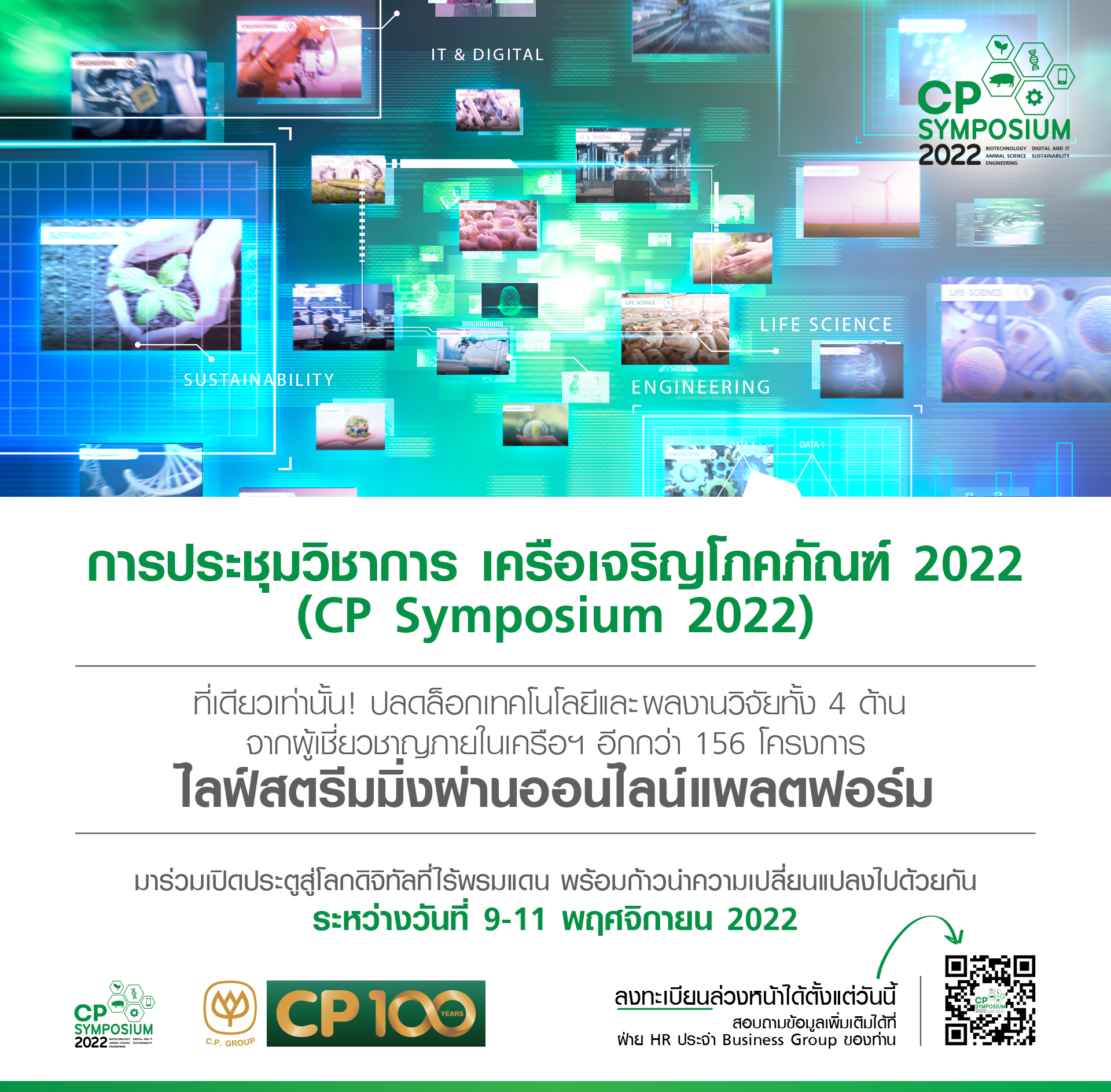 แล้วมาร่วมสร้างสรรค์ความรู้และวิทยาการเพื่อก้าวสู่ศตวรรษใหม่ไปด้วยกัน ในวันที่ 9 – 11 พฤศจิกายน 2022 ณ ศูนย์นิทรรศการและการประชุมไบเทค บางนา พร้อมถ่ายทอดสดผ่านระบบออนไลน์ไปยังซีพีทุกประเทศ .