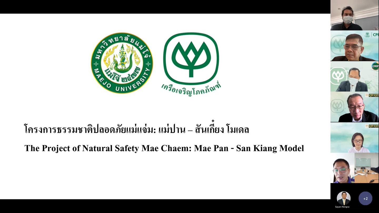 คุณประสิทธิ์ ดำรงชิตานนท์ รองประธานกรรมการ กลุ่มธุรกิจพืชครบวงจร ข้าว ขนส่งและบริการ เครือเจริญโภคภัณฑ์ รับฟังสรุปความคืบหน้า 10 ปี โครงการธรรมชาติปลอดภัย เพื่อพัฒนาคุณภาพชีวิตอย่างยั่งยืนของชุมชนแม่ปาน และชุมชนสันเกี๋ยง อ.แม่แจ่ม จ.เชียงใหม่ การเปลี่ยนพฤติกรรมการทำไร่เลื่อนรอยสู่การเกษตรอย่างยั่งยืน ด้วยการบริหารจัดการน้ำในพื้นที่โดยชุมชน ด้วยบ่อพวงสันเขา กักเก็บน้ำเพื่อการเกษตร เปลี่ยนพืชเชิงเดียวเป็นพืชหมุนเวียน เพิ่มรายได้จากการเลี้ยงหมู ไก่ไข่ การแปรรูปอาหารและการจัดตั้งวิสาหกิจชุมชนเกษตรธรรมชาติปลอดภัย
