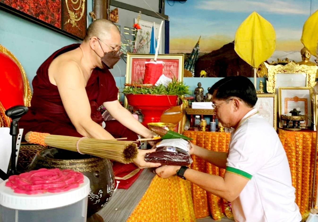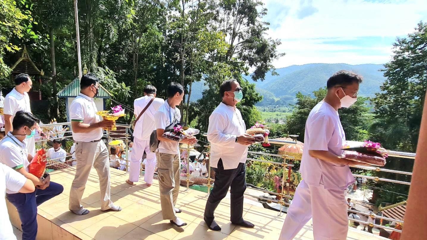 คุณอำนาจ ม้าทอง รองกรรมการผู้จัดการ กลุ่มธุรกิจพืชครบวงจร ข้าว ขนส่งและบริการ เครือเจริญโภคภัณฑ์ อัญเชิญผ้าไตร ไปทอดถวายพระภิกษุสงฆ์ ผู้จำพรรษากาลถ้วนไตรมาส ณ สำนักปฏิบัติธรรม “ธรรมศิลป์” อ.สะเมิง จ.เชียงใหม่ เป็นแห่งที่ ๔ ของกฐินกาลในปี ๖๕ นี้