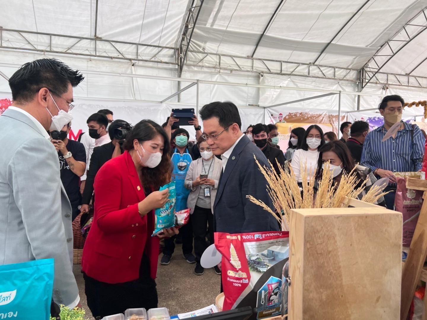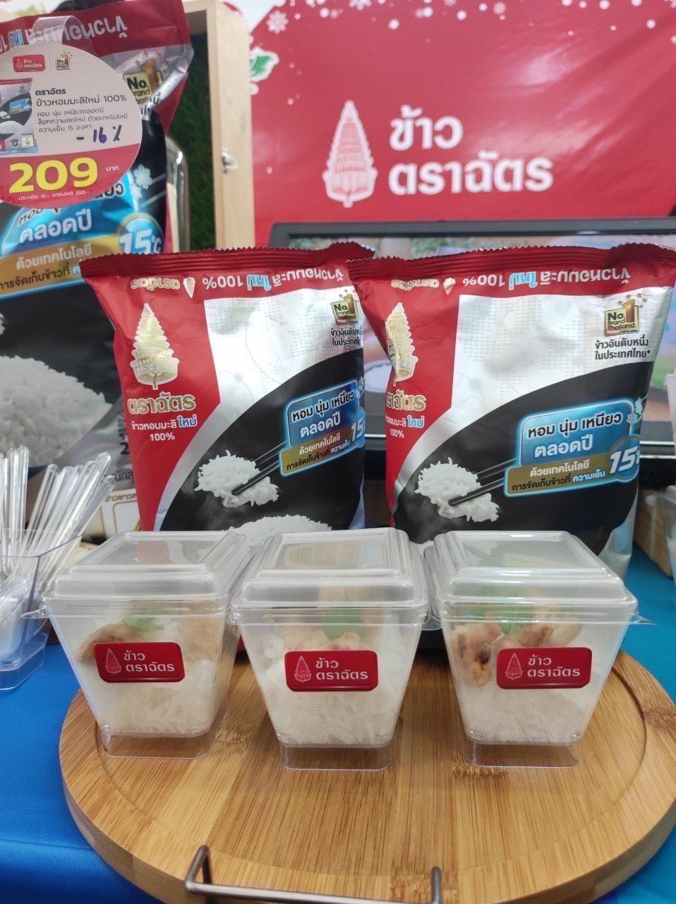 ภายในงานมีคุณจุรินทร์ ลักษณวิศิษฏ์ รองนายกรัฐมนตรี และรัฐมนตรีว่าการกระทรวงพาณิชย์ เป็นประธานเปิดงาน โดยมีคุณรัชตา พนมสุข ผู้จัดการฝ่าย สื่อสารองค์กรช่องทางออนไลน์และกิจกรรมองค์กร (CCO) เป็นผู้เเทนบริษัท ร่วมงานในครั้งนี้ “ข้าวตราฉัตร” ขอร่วมเป็นส่วนหนึ่งในการช่วยลดภาระค่าครองชีพของพี่น้องประชาชน ด้วยการจำหน่ายสินค้าข้าวสารคุณภาพดี ราคาโปรโมชั่นพิเศษ ช่วงเทศกาลปีใหม่นี้ อาทิ ข้าวหอมมะลิใหม่ตราฉัตร และฉัตรไลท์ และขอเป็นกำลังใจ ยืนหยัดเคียงข้างพี่น้องคนไทย