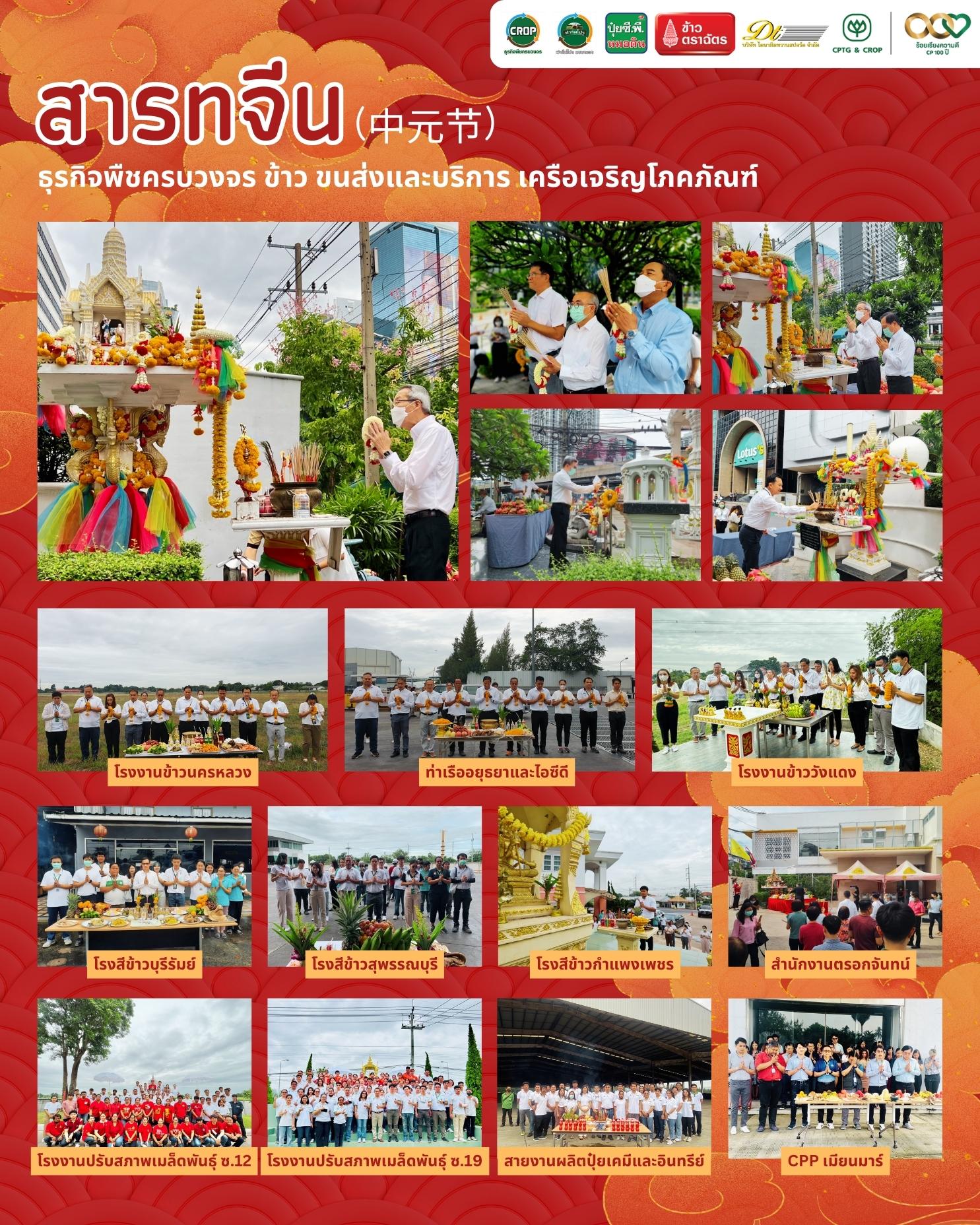 คุณประสิทธิ์ ดำรงชิตานนท์ รองประธานกรรมการ พร้อมผู้บริหารและพนักงาน อาคาร ซี.พี.ทาวเวอร์2 (ฟอร์จูนทาวน์) และสถานประกอบการต่างๆ ภายใต้ธุรกิจพืชครบวงจร ข้าว ขนส่งและบริการ เครือเจริญโภคภัณฑ์ ร่วมกันประกอบพิธีไหว้เจ้าที่และสิ่งศักดิ์สิทธิ์ เพื่อความเป็นสิริมงคล เป็นวันสำคัญที่ลูกหลานชาวจีนจะแสดงความกตัญญูต่อบรรพบุรุษ ดำรงไว้ซึ่งประเพณีอันดีงาม