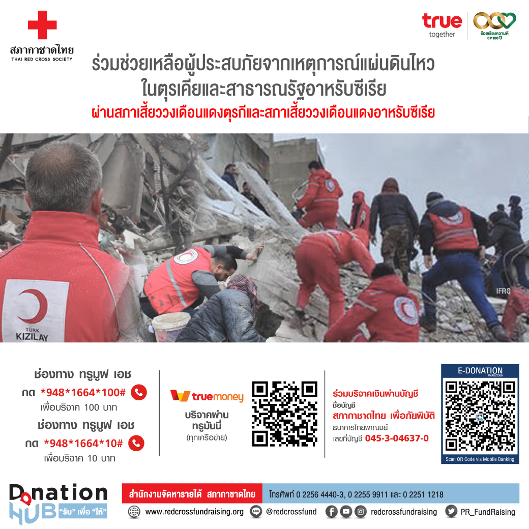 “สภากาชาดไทย” เปิดรับบริจาคเงินช่วยเหลือผู้ประสบภัยจาก “เหตุการณ์แผ่นดินไหวในตุรเคียและสาธารณรัฐอาหรับซีเรีย”