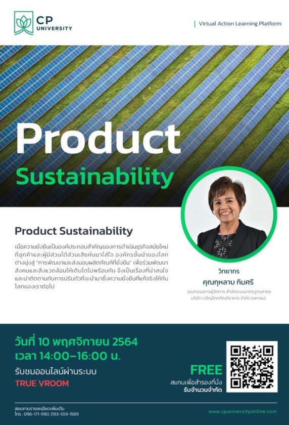 CP University ขอเชิญผู้เพื่อน ๆ ชาวซีพี เข้าร่วมเรียนออนไลน์ในหัวข้อ “Product Sustainability”