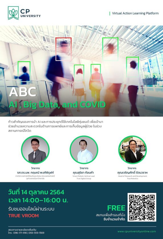 CP University ขอเชิญเข้าร่วมเรียนออนไลน์ในหัวข้อ “ABC: AI, Big Data and COVID”