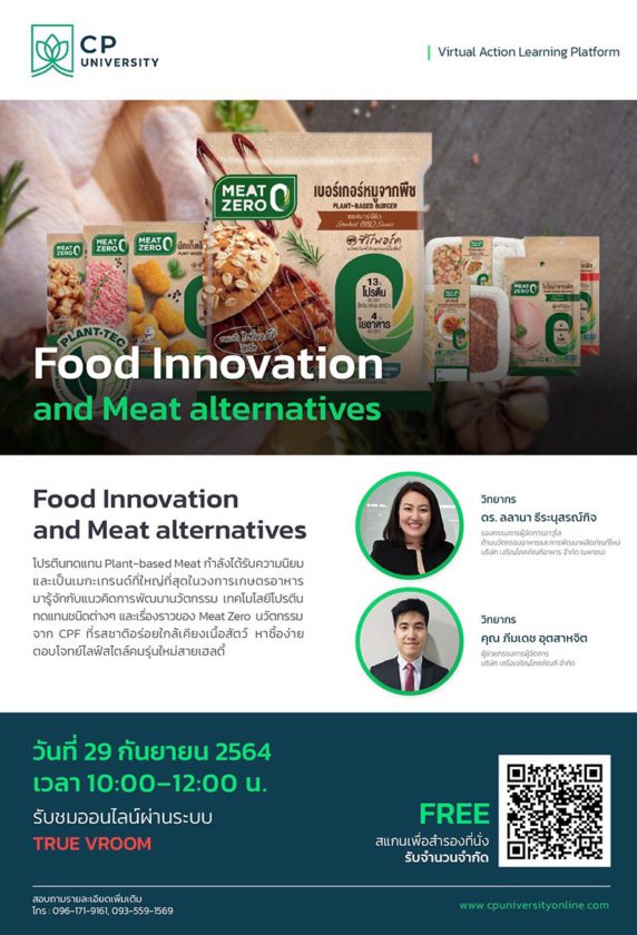 CP University ขอเชิญเข้าร่วมเรียนออนไลน์ในหัวข้อ “Food Innovation and Meat alternatives”
