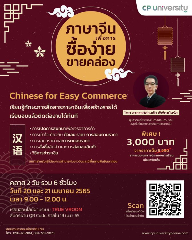 CP University ขอเชิญเข้าร่วมเรียนออนไลน์ในหัวข้อ “Chinese for Easy Commerce ภาษาจีนเพื่อการซื้อง่ายขายคล่อง”