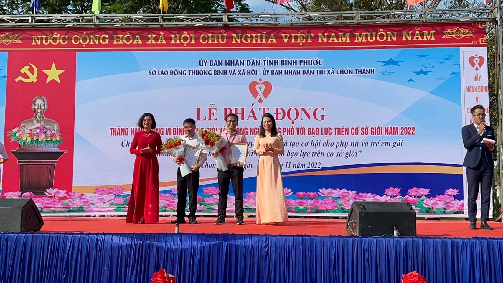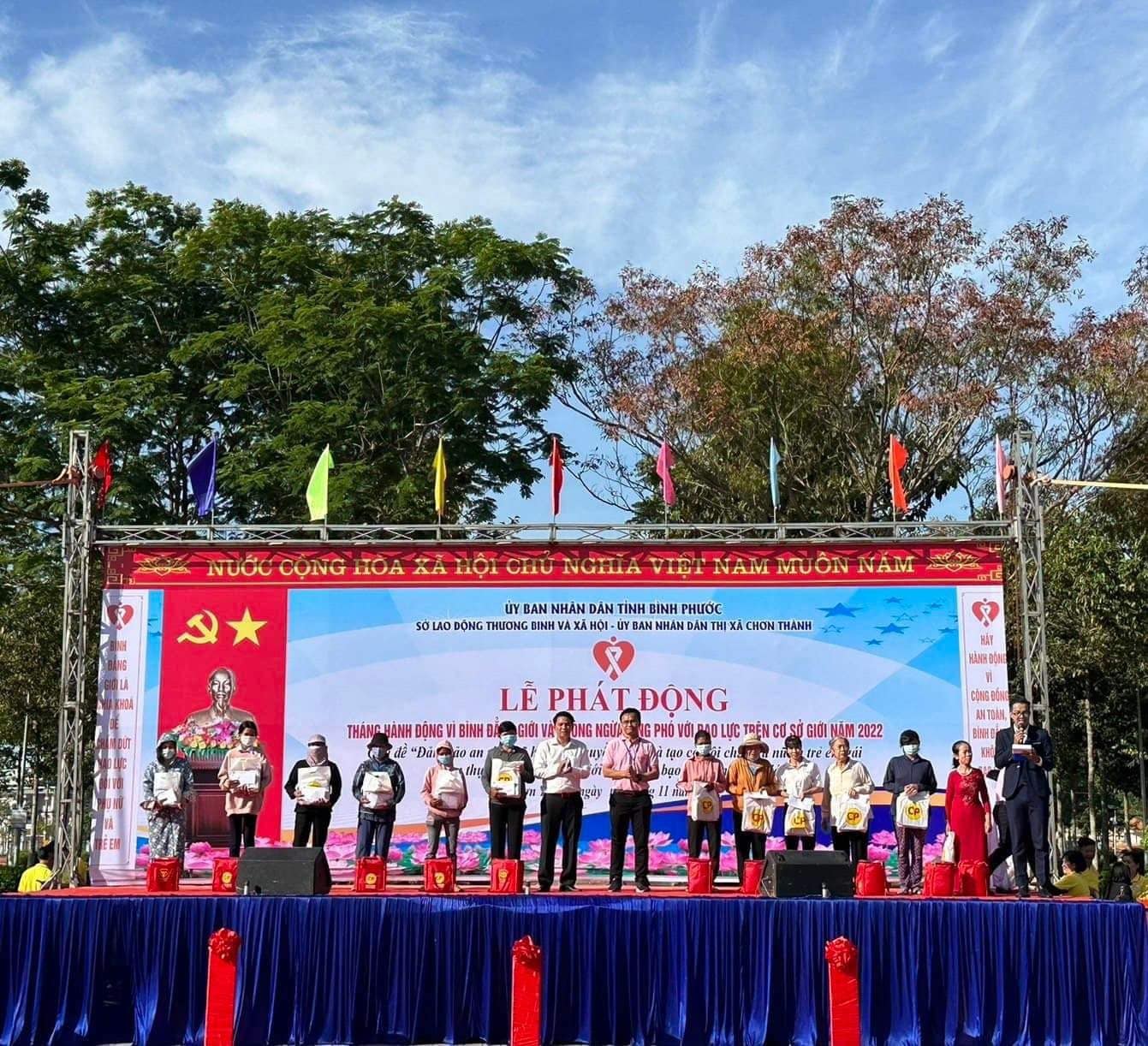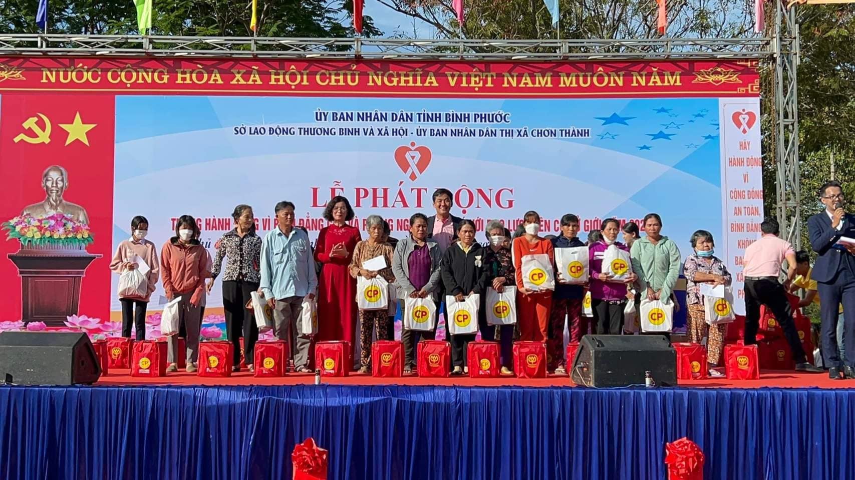 คุณ Nguyen Quoc Khang รองกรรมการผู้จัดการด้านทรัพยากรบุคคล และผู้บริหาร CP เวียดนาม ร่วมมอบผลิตภัณฑ์อาหารพร้อมทาน CP สนับสนุนกิจกรรมบริจาคเพื่อช่วยเหลือสตรีและเด็กยากไร้ ประเด็น “ดูแลความมั่นคงในการดำรงชีวิต เพื่อส่งเสริมสิทธิและโอกาสให้สตรีและเด็ก ตระหนักถึงความเท่าเทียมทางเพศและขจัดความรุนแรงทางเพศ” จัดโดย สำนักงานแรงงาน ทหารทุพพลภาพและสังคม จ.บิ่นห์เฟื้อก เพื่อร่วมสร้างความตระหนักและสร้างการมีส่วนร่วมในชุมชนให้ดำเนินการตามนโยบายฯ ยุติความรุนแรงต่อสตรีและเด็กทั่วเวียดนาม