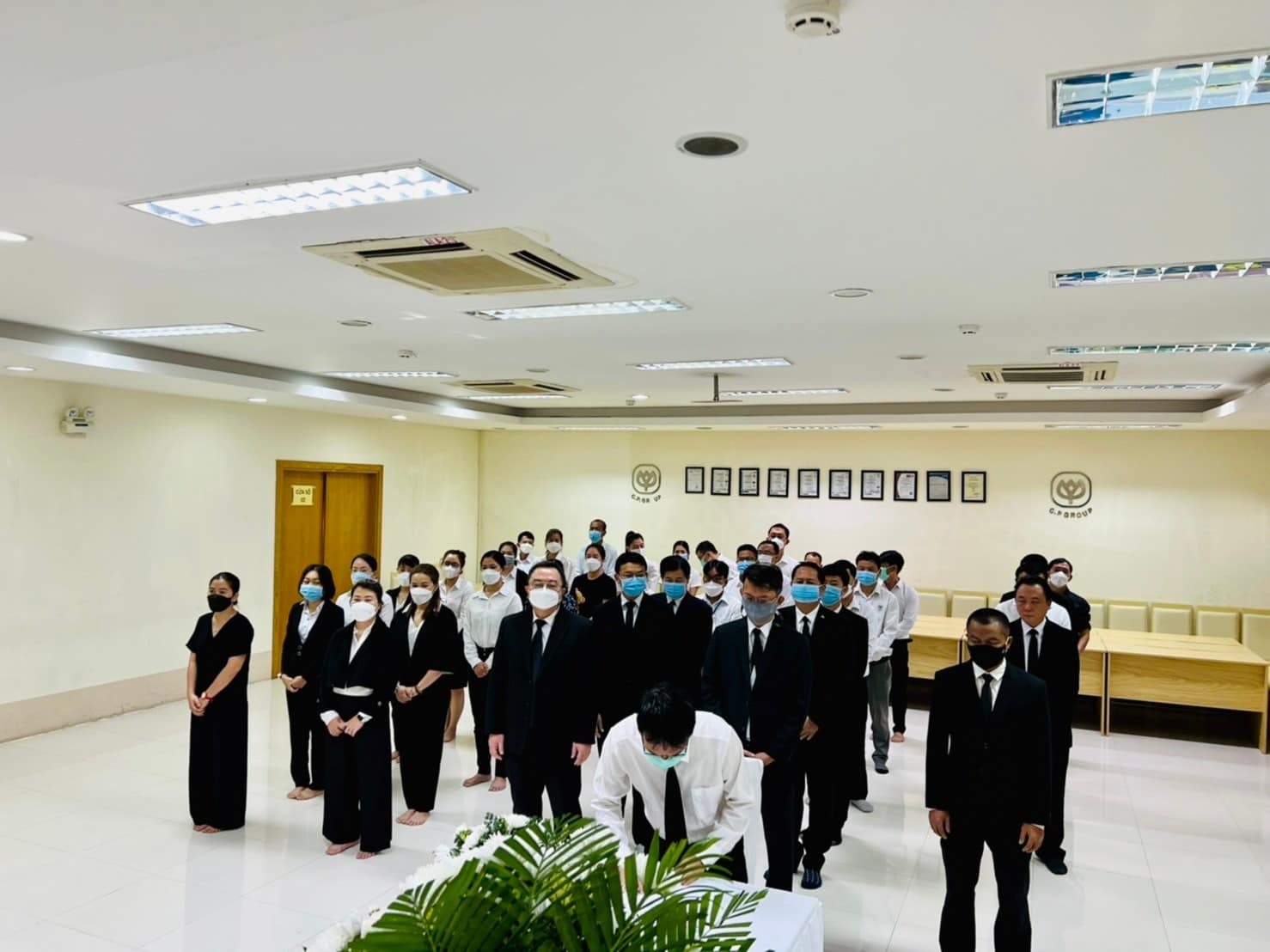 คุณสุขสันต์ เจียมใจสว่างฤกษ์ รองประธานคณะกรรมการบริหาร CPF พร้อมด้วย คุณมนตรี สุวรรณโพธิ์ศรี กรรมการผู้จัดการ นำผู้บริหารและพนักงาน CP เวียดนาม จัดพิธีไว้อาลัยท่านประธานกิตติมศักดิ์มนตรี เจียรวนนท์ โดยยืนสงบนิ่งเพื่อแสดงความอาลัยและรำลึกถึงพระคุณท่านประธานฯ ในสำนักงานและโรงงาน จำนวน 10 แห่ง ได้แก่ สำนักงานใหญ่ (Head Office), โรงงาน Food Cu Chi, โรงงาน Food Binh Phuoc, โรงงาน Feed Bau Xeo (Aqua Bau Xeo), โรงงาน Food Ben tre, ฟาร์มเพาะฟักลูกกุ้ง Ben tre (Shrimp Hatchery), โรงงาน Food Hue, โรงงาน Feed Binh Dinh, โรงงาน Feed Hai Duong และ โรงงานแปรรูปเนื้อสัตว์ Swine Slaughterhouse Ha Noi ขณะที่พนักงาน CP เวียดนามในพื้นที่อื่นๆ ทั่วประเทศ ร่วมใจสวดมนต์ นั่งสมาธิ และใส่บาตรพระสงฆ์ เพื่ออุทิศแด่ท่านประธานมนตรีด้วย