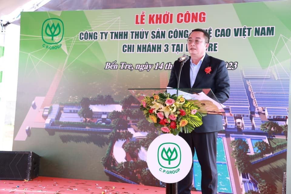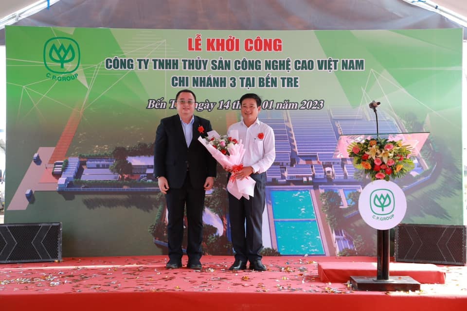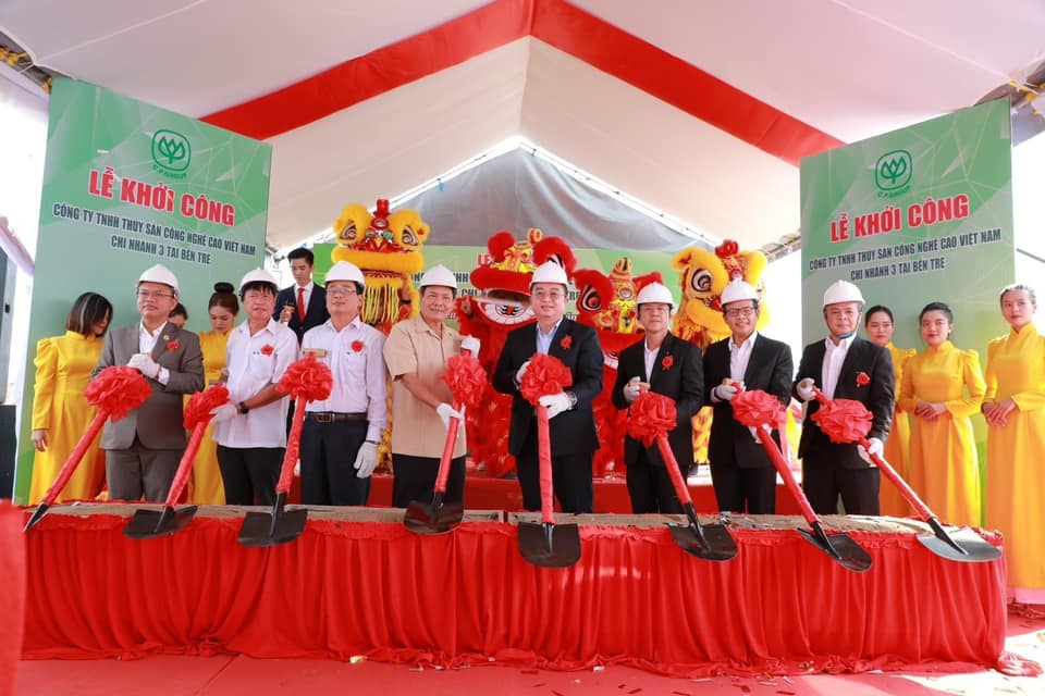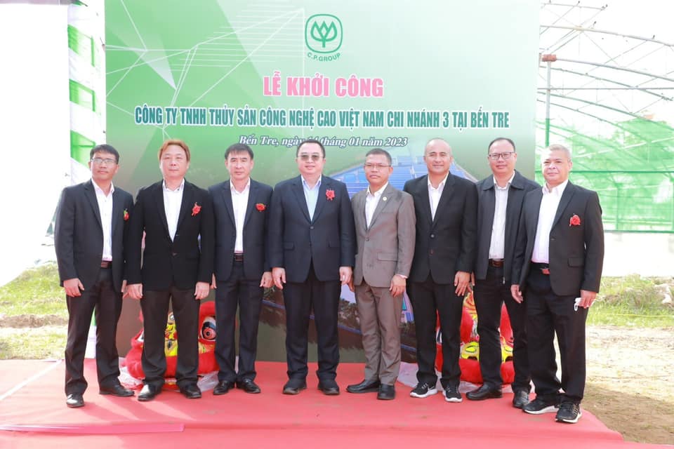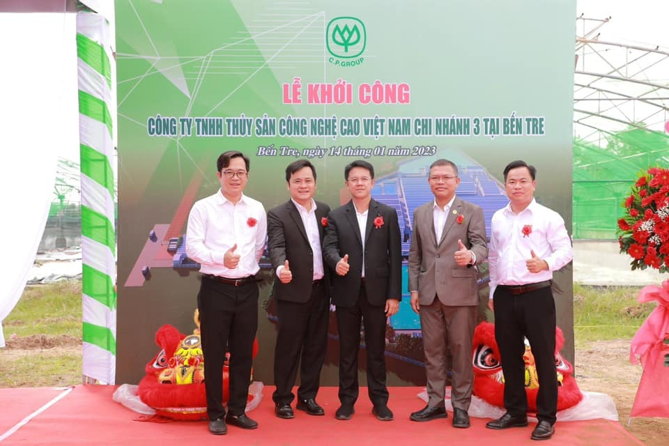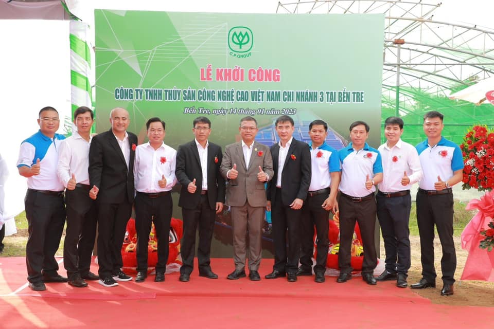 คุณ Nguyen Van Buoi รองผู้อำนวยการกรมเกษตรและการพัฒนาชนบทจังหวัดเบ๊นแจ พร้อมด้วย คุณอดิศักดิ์ ต่อสกุล รองกรรมการผู้จัดการบริหาร CP เวียดนาม และ ผู้นำจากหน่วยงานต่างๆ ในเขตบินห์ได๋ จ.เบ๊นแจ ร่วมพิธีวางศิลาฤกษ์ก่อสร้าง บริษัท สัตว์น้ำเทคโนโลยีขั้นสูงเวียดนาม จำกัด หรือ AAVN สาขา 9 ใน จ.เบ๊นแจ เพื่อผลิตพันธุ์กุ้งและการเพาะเลี้ยงสัตว์น้ำเชิงพาณิชย์ด้วยเทคโนโลยีขั้นสูงที่มีความทันสมัยได้มาตรฐานสากล สามารถตรวจสอบย้อนกลับได้ และมิตรต่อสิ่งแวดล้อม รองรับความต้องการของตลาด ยกระดับอุตสาหกรรมอาหารทะเลของเวียดนามอย่างยั่งยืน โดยมี คณะผู้บริหารระดับสูง CP เวียดนาม ร่วมด้วย