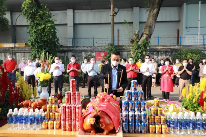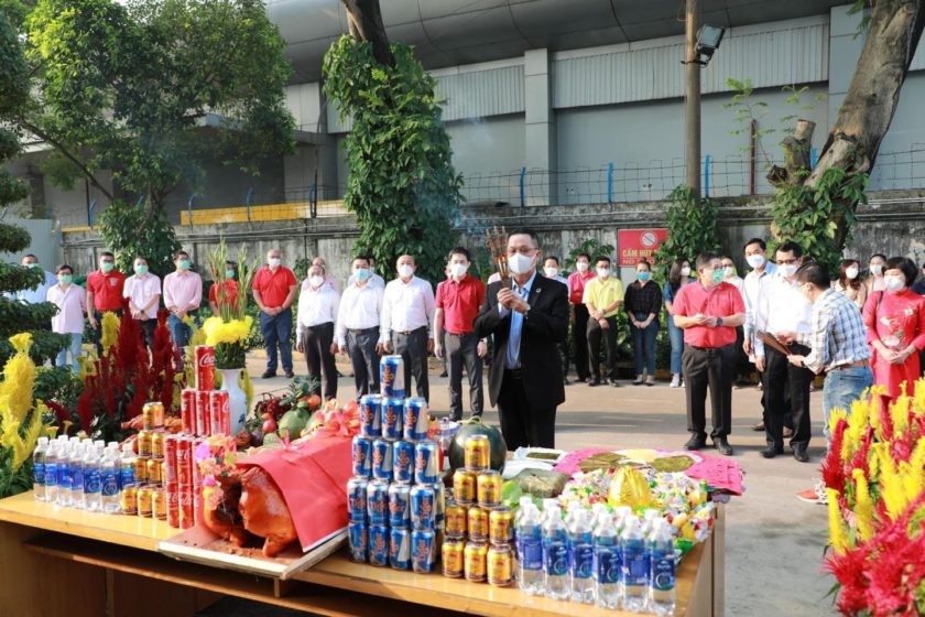 คุณสุขสันต์ เจียมใจสว่างฤกษ์ รองประธานคณะกรรมการบริหาร CPF พร้อมด้วย คุณมนตรี สุวรรณโพธิ์ศรี กรรมการผู้จัดการ กรรมการผู้จัดการ CP เวียดนาม นำคณะผู้บริหารและพนักงานทั่วประเทศ จัดพิธีเต๊ด ไหว้สิ่งศักดิ์สิทธิ์ เพื่อความเป็นสิริมงคลและสืบสานวัฒนธรรมประเพณีอันดีงาม เนื่องในเทศกาลเต๊ด ประจำปี 2565 ภายใต้มาตรการป้องกันโควิด-19 อย่างเข้มงวด ณ สำนักงานใหญ่ จ.ด่องนาย ประเทศเวียดนาม