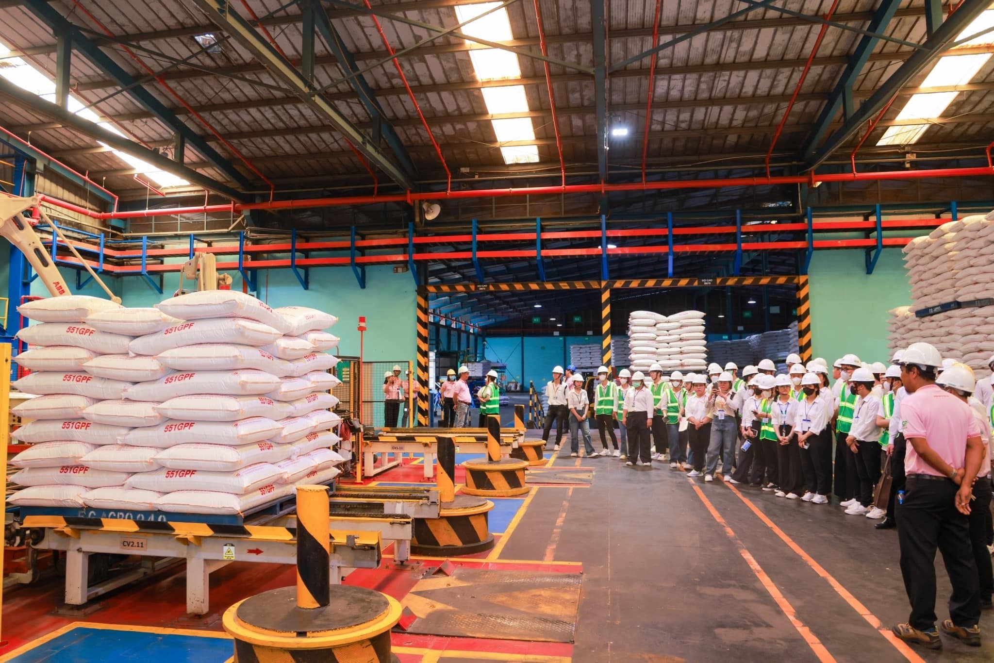 คณะนักศึกษา มหาวิทยาลัยวนศาสตร์ วิทยาเขตด่งนาย กว่า 50 คน เยี่ยมชม โรงงานผลิตอาหารสัตว์บกเบ่าแซ้ว ของ CP เวียดนาม เพื่อศึกษาการนำเทคโนโลยีและนวัตกรรมทันสมัย มาใช้ในกระบวนการผลิตอาหารสัตว์รักษ์โลก ยึดหลักการโภชนาการแม่นยำ สารอาหารตรงกับช่วงวัยของสัตว์ ทั้งปริมาณ คุณภาพ โดยวัตถุดิบผลิตอาหารสัตว์ทั้งหมด สามารถตรวจสอบย้อนกลับได้ตลอดห่วงโซ่คุณค่า สะท้อนความมุ่งมั่นความรับผิดชอบต่อสังคมและสิ่งแวดล้อมอย่างยั่งยืน โดยมี คุณวินัย แดงวังหมาก ผู้อำนวยการ โรงงานฯ และทีมงาน CP เวียดนาม ให้การต้อนรับ