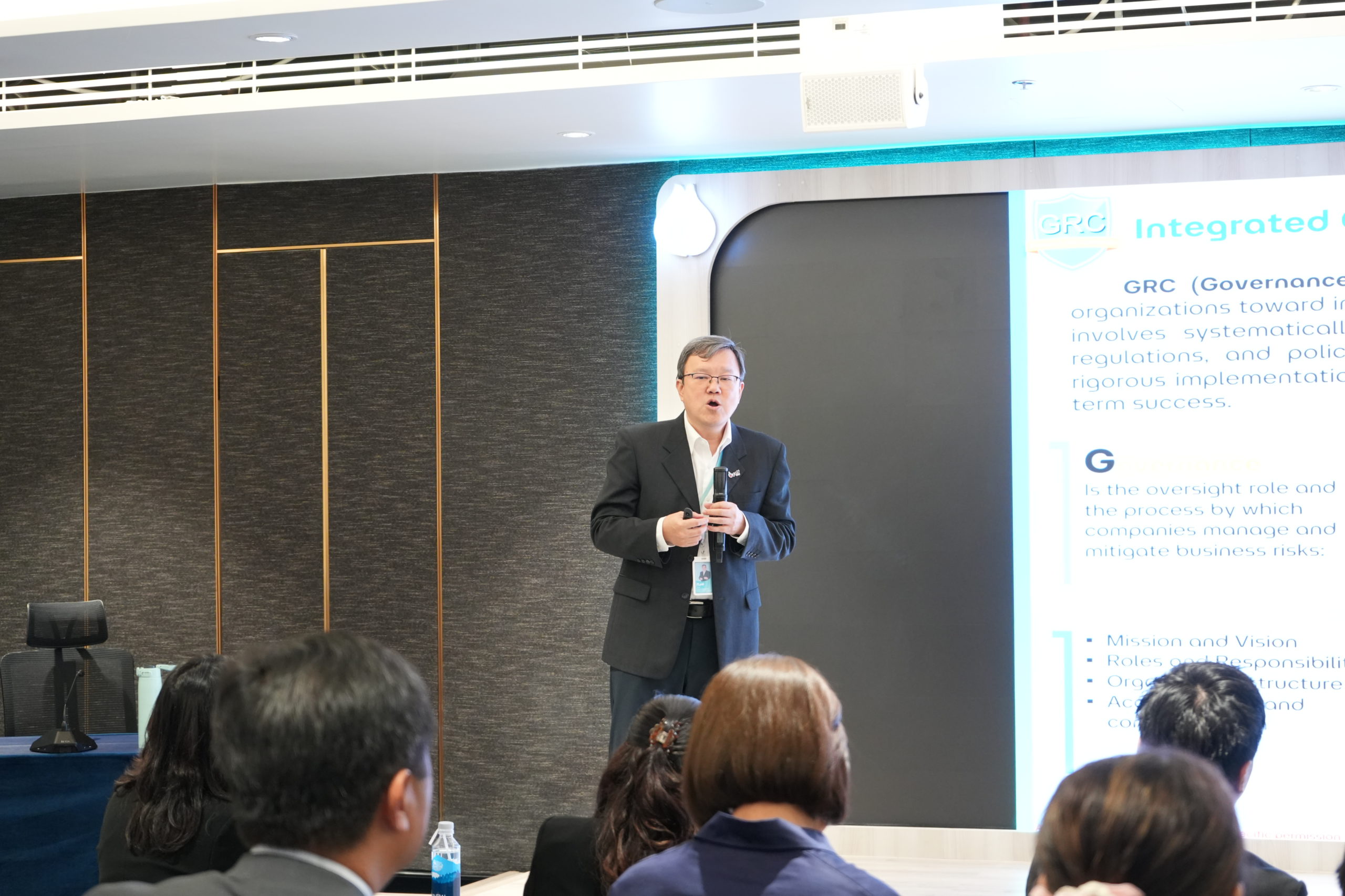 จากนั้นเป็นการบรรยายหัวข้อ “การควบคุมภายใน (Internal Control)” โดยคุณพรรณพนัช พูลทรัพย์ ผู้จัดการฝ่ายควบคุมภายในและจัดการความเสี่ยง และหัวข้อ “การกำกับการปฏิบัติตามกฎหมาย กฎ ระเบียบองค์กร (Compliance)” โดยคุณดวงกมล ไวยคุณา ผู้จัดการฝ่ายกำกับกฎหมายและกฎระเบียบองค์กร ปิดท้ายด้วยหัวข้อ “การตรวจสอบภายใน (Internal Audit)” โดยคุณฎาญิน เจียศีรีพงษ์กุล ผู้จัดการฝ่ายกลยุทธ์และพัฒนาคุณภาพการตรวจสอบภายใน