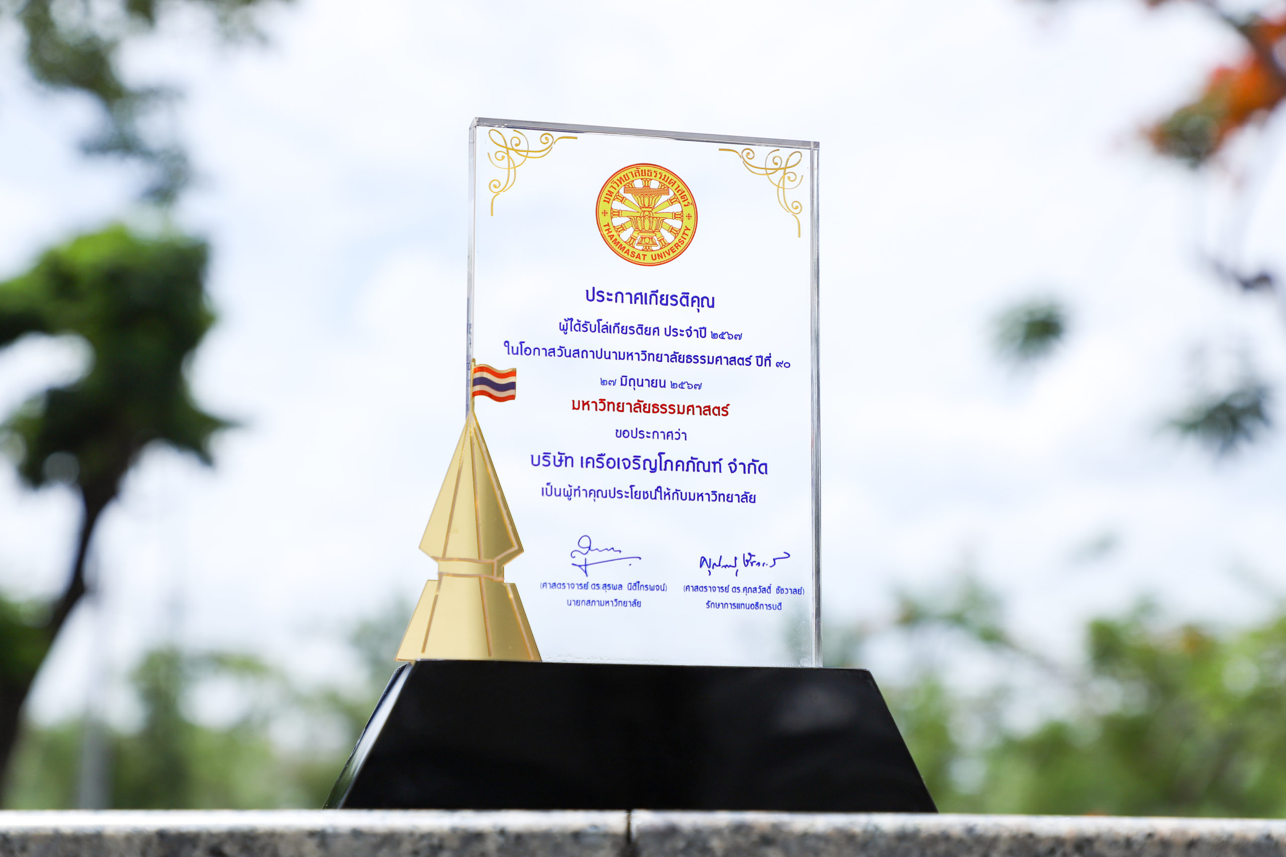 วันที่ 27 มิถุนายน 2567 – ศาสตราจารย์ ดร.สุรพล นิติไกรพจน์ นายกสภามหาวิทยาลัยธรรมศาสตร์ มอบโล่เกียรติยศให้แก่ เครือเจริญโภคภัณฑ์ ในฐานะผู้ทำคุณประโยชน์ให้กับมหาวิทยาลัยธรรมศาสตร์ โดยมี คุณสมเจตนา ภาสกานนท์ ผู้อำนวยการด้านพัฒนาความยั่งยืน สำนักบริหารความยั่งยืน ธรรมาภิบาลและสื่อสารองค์กร เครือเจริญโภคภัณฑ์ เป็นผู้แทนรับมอบ ในงานวันสถาปนามหาวิทยาลัยธรรมศาสตร์ครบรอบ 90 ปี ที่จัดขึ้นเพื่อเพื่อเฉลิมฉลองและเชิดชูเกียรติบุคคลที่ทำคุณงามความดีต่อสังคมและประเทศชาติ รวมถึงยกย่องบุคคลและองค์กรที่ทำคุณประโยชน์ให้กับมหาวิทยาลัย ณ หอประชุมมหาวิทยาลัยธรรมศาสตร์ ท่าพระจันทร์