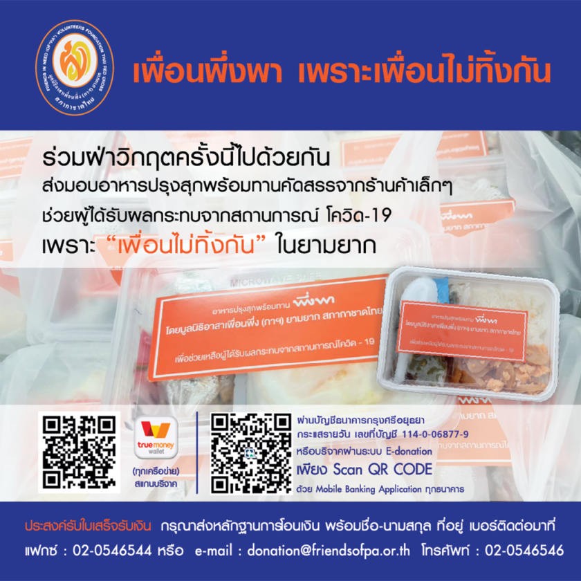 มูลนิธิฯขอเป็นส่วนเล็กๆช่วยสนับสนุนฯในการบรรเทาปัญหาเพื่อให้เราทุกคนฝ่าวิกฤตครั้งนี้ไปด้วยกัน เพราะ “เพื่อนไม่ทิ้งกัน”