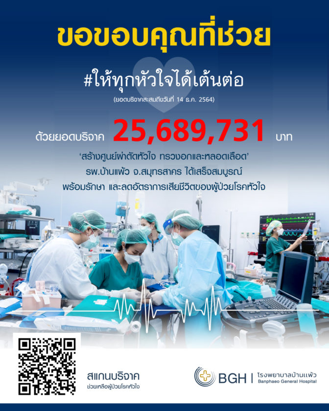วันนี้บุคลากรทางการแพทย์ทุกท่านยังคงเดินหน้าทำหน้าที่อย่างเต็มที่ และยังเปิดระดมทุนเพื่อจัดซื้ออุปกรณ์การแพทย์ ช่วยชีวิตผู้ป่วยโรคหัวใจต่อไป สามารถสมทบทุนได้ทาง