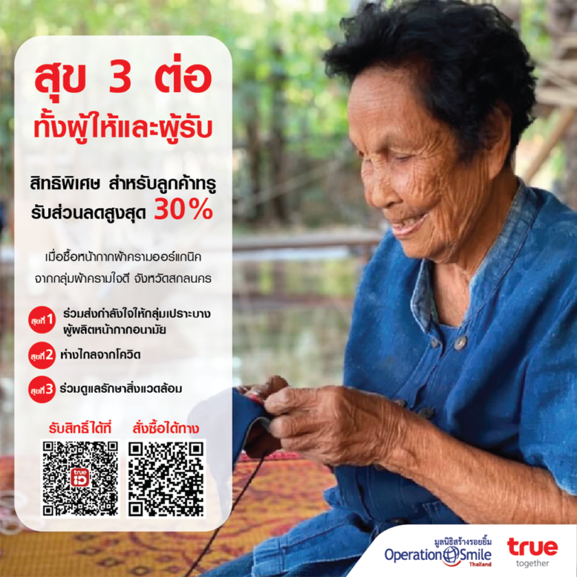 👉🏻สิทธิพิเศษ!! สำหรับลูกค้าทรู รับส่วนลด สูงสุด 30% เมื่อซื้อหน้ากากผ้าครามออร์แกนิค จากกลุ่มผ้าครามใจดี จังหวัดสกลนคร