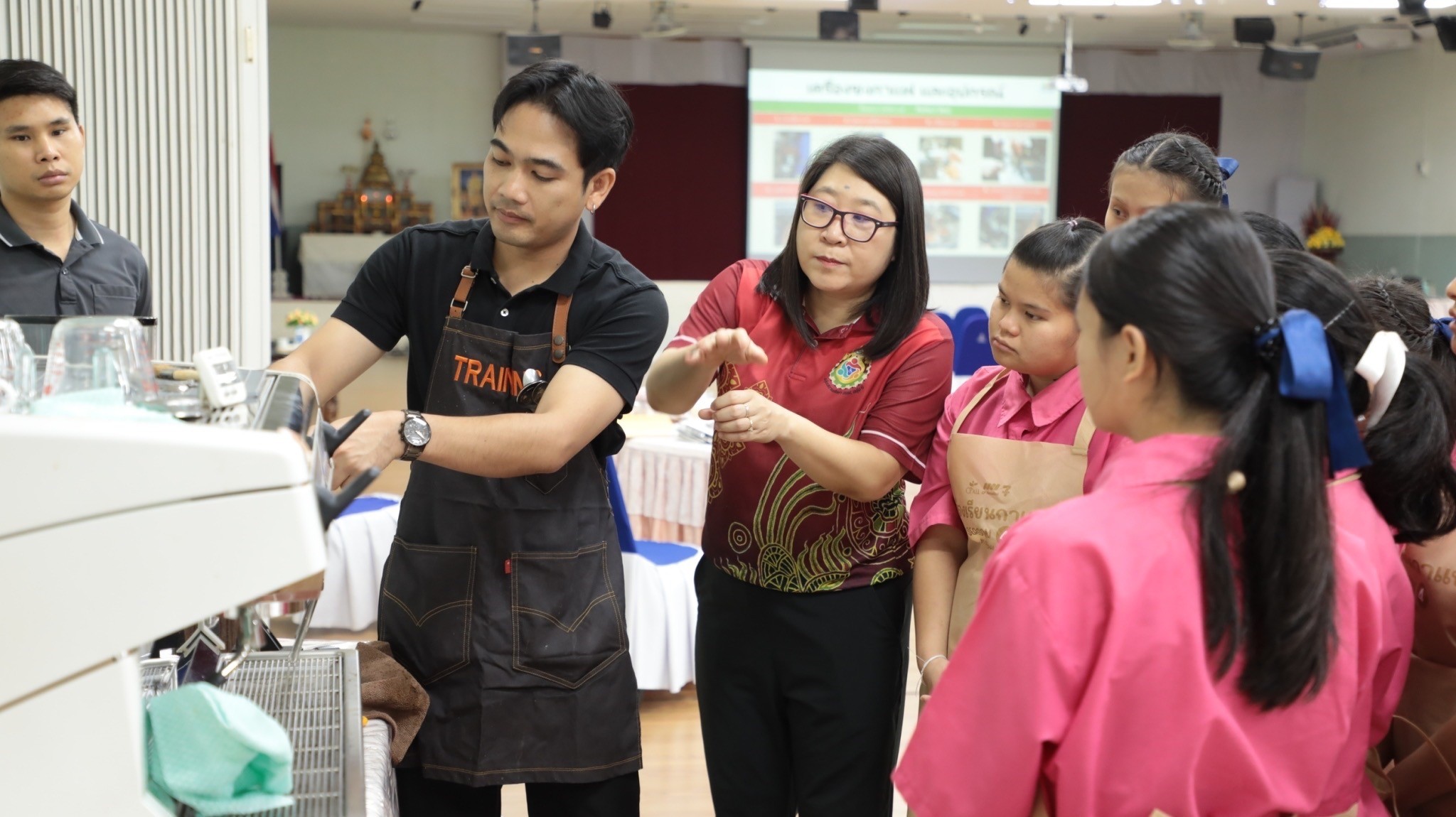 การอบรมแบ่งออกเป็น 2 ช่วง ได้แก่ ช่วงแรกเป็นการบรรยายให้ความรู้เกี่ยวกับประวัติความเป็นมาของกาแฟแต่ละสายพันธุ์ และอุปกรณ์ที่ใช้ในการชงกาแฟ โดยได้รับเกียรติจากวิทยากรผู้เชี่ยวชาญจากบริษัท ซีพี รีเทลลิงค์ จำกัด ส่วนช่วงที่สองเป็นภาคปฏิบัติ ซึ่งผู้เข้าร่วมจะได้ทดลองชงเครื่องดื่มทั้งเมนูร้อนและเย็น โดยมีวิทยากรประจำฐานคอยให้คำแนะนำ และคุณครูทำหน้าที่เป็นล่ามภาษามือเพื่อให้การเรียนการสอนเป็นไปอย่างราบรื่นและมีประสิทธิภาพ