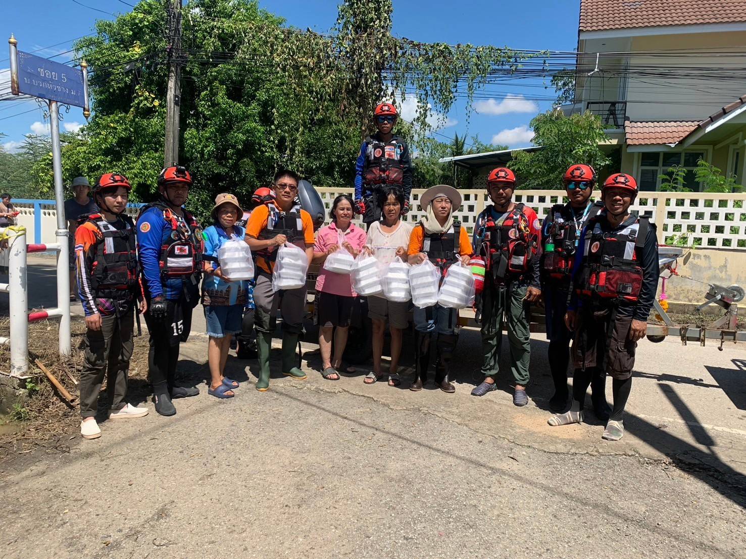 นอกจากนี้ ยังได้ร่วมกับชมรมกู้ภัยจิตอาสาบารมีพ่อแก่สาขากำแพงเพชร นำเรือเข้าไปส่งมอบถุงยังชีพพร้อมข้าวกล่องให้กับผู้ประสบภัยในพื้นที่ที่เข้าถึงยาก และสนับสนุนข้าวตราฉัตรจำนวน 240 กิโลกรัม ให้กับโรงครัวชุมชนวัดบวกครกเหนือ เพื่อประกอบอาหารเลี้ยงผู้ประสบภัยและจิตอาสาในชุมชน ตำบลท่าวังตาล
