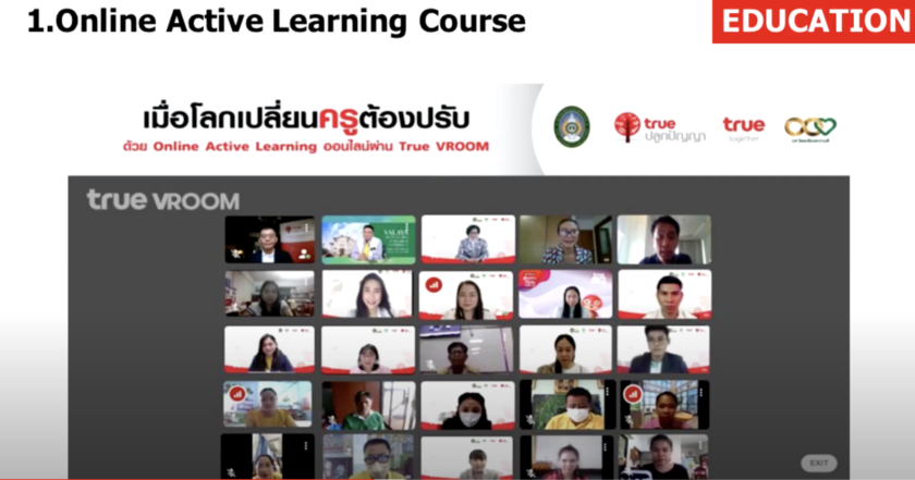 ทางด้าน คุณรมมุก เพียจันทร์ Associate Director บริษัท ทรูคอร์ปอเรชั่นจำกัด (มหาชน) กล่าวถึง การพลิกบทบาทของ บริษัท ทรูคอร์ปอเรชั่นจำกัด (มหาชน) ในช่วงวิกฤตการแพร่ระบาดของโควิด-19 โดยกล่าวว่า กลุ่มทรูในฐานะผู้นำด้านนวัตกรรมเทคโนโลยีได้นำเทคโนโลยีเข้ามาช่วยผลักดันโครงการเพื่อสังคมในด้านต่าง ๆ เช่น ด้านการศึกษา ผ่านโครงการ ‘เมื่อโลกเปลี่ยน ครูต้องปรับ’ ด้วย Online Active Learning ผ่าน True Vroom ส่งเสริมเสริมครูผู้สอนใช้แพลตฟอร์มใหม่เพื่อให้เข้าถึงนักเรียนในช่วงสถานการณ์การแพร่ระบาดของโควิด-19