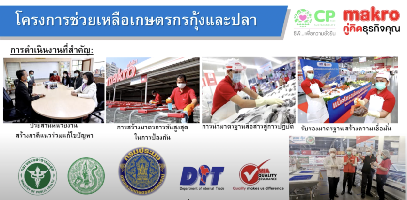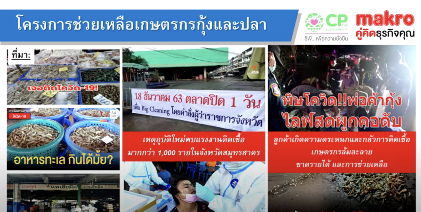 ทั้งนี้ แม็คโครในฐานะผู้นำค้าส่ง-ค้าปลีก ต้องนึกถึงคู่ค้าตลอดห่วงโซ่คุณค่า เช่น โครงการช่วยเกษตรกรกุ้งและปลาที่ผนึกกรมประมงหนุนอาหารทะเลปลอดภัย ปรุงสุก-ทานได้ ช่วยรับซื้ออาหารทะเลจากเกษตรกรในช่วงสถานการณ์การแพร่ระบาดของโควิด-19