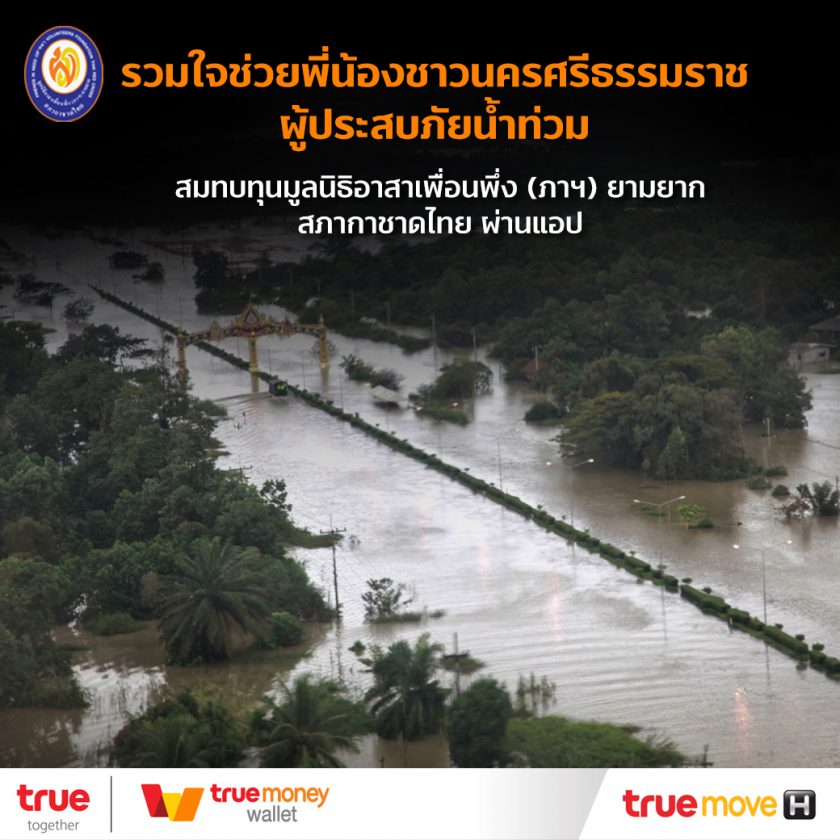พี่น้องชาวไทยเราไม่ทิ้งกัน ร่วมช่วยเหลือผู้ประสบภัยนำ้ท่วม จ.นครศรีธรรมราชด้วยการสมทบทุนให้กับมูลนิธิอาสาเพื่อนพึ่ง (ภาฯ) ยามยาก สภากาชาดไทย