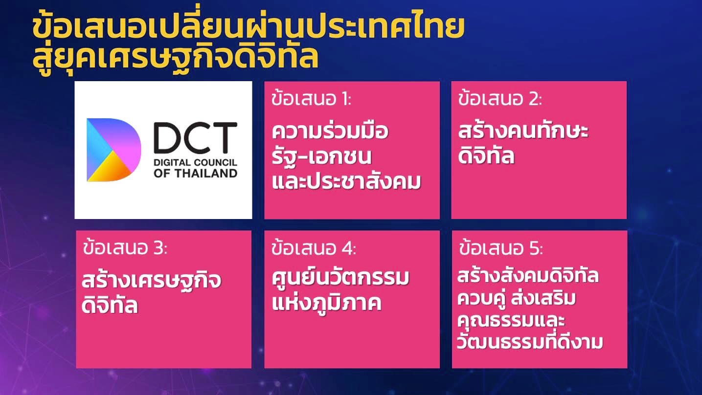 โดยสิ่งสำคัญที่ประเทศไทยสามารถก้าวข้ามความท้าทายในระดับโลกได้ คือ นโยบายทรานส์ฟอร์มประเทศไทย ขับเคลื่อนประเทศสู่ยุค 5.0 ซึ่งสภาดิจิทัล ฯ ได้เสนอแนวทางสำคัญ 5 ด้าน ที่จะเสริมศักยภาพและขีดความสามารถด้านการแข่งขันของไทยให้มีความเข้มแข็งและยั่งยืน ประกอบด้วย