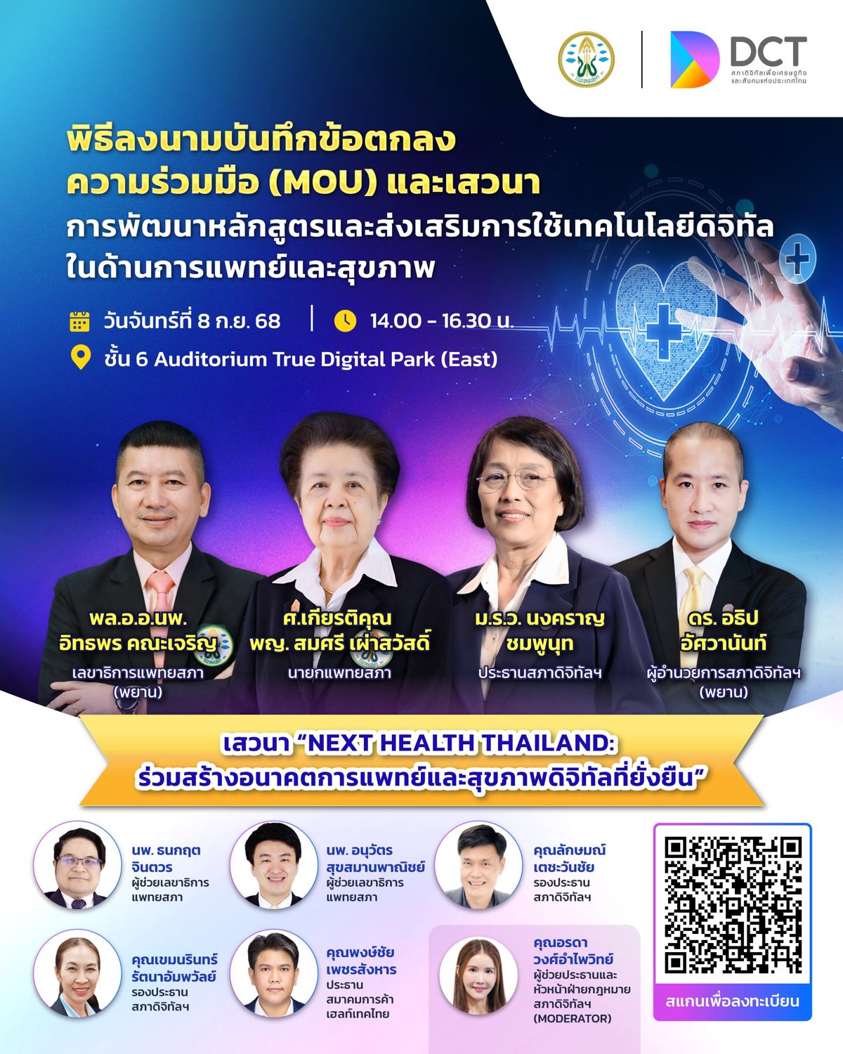 🤝 พร้อมเสวนาจากผู้เชี่ยวชาญทั้งภาครัฐและเอกชนที่จะมาแชร์แนวทางการใช้เทคโนโลยีดิจิทัลเพื่อยกระดับวงการแพทย์ไทยใน