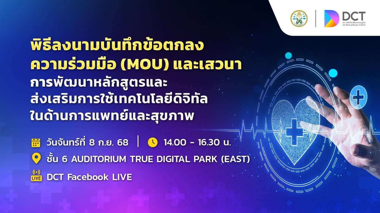 📣 สภาดิจิทัลฯ ร่วมกับแพทยสภา ขอเชิญชวนผู้สนใจร่วมงานลงนาม MOU หัวข้อ “พัฒนาหลักสูตรและส่งเสริมการใช้เทคโนโลยีดิจิทัลในด้านการแพทย์และสุขภาพ”