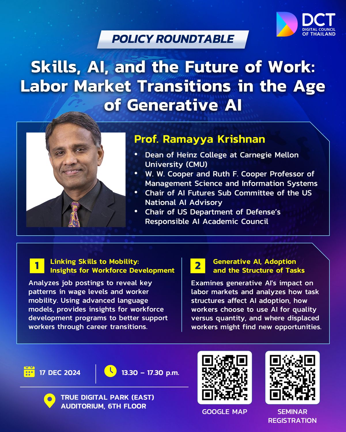พบกับ Prof. Ramayya Krishnan ผู้เชี่ยวชาญด้าน AI และ Digital Transformation ระดับโลก นำเสนองานวิจัยล่าสุด และร่วมแลกเปลี่ยนความคิดเห็นกับผู้ทรงคุณวุฒิจากภาครัฐและเอกชน