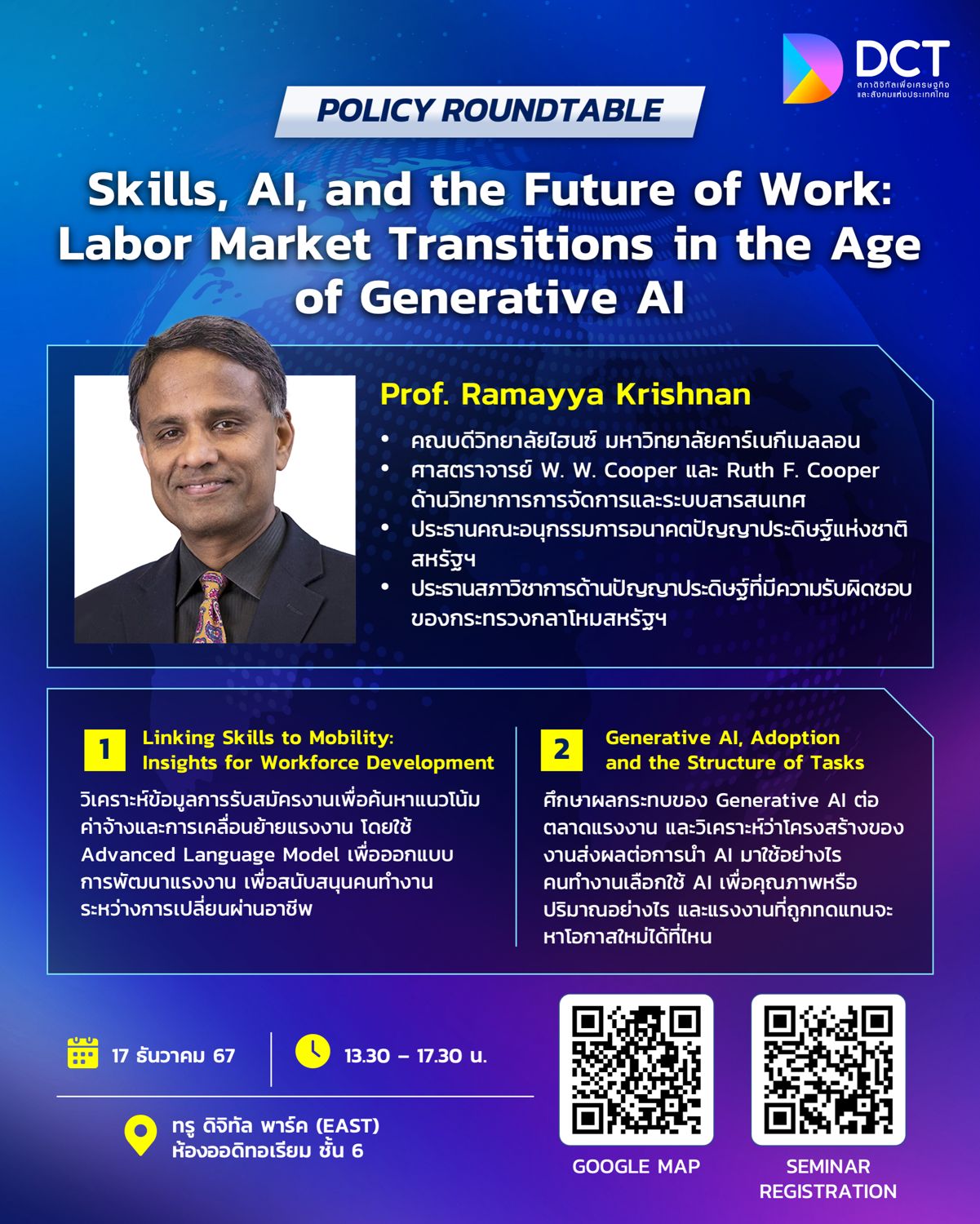 📣 DCT เชิญร่วมงาน Policy Roundtable หัวข้อ Skills, AI, and the Future of Work: Labor Market Transitions in the Age of Generative AI