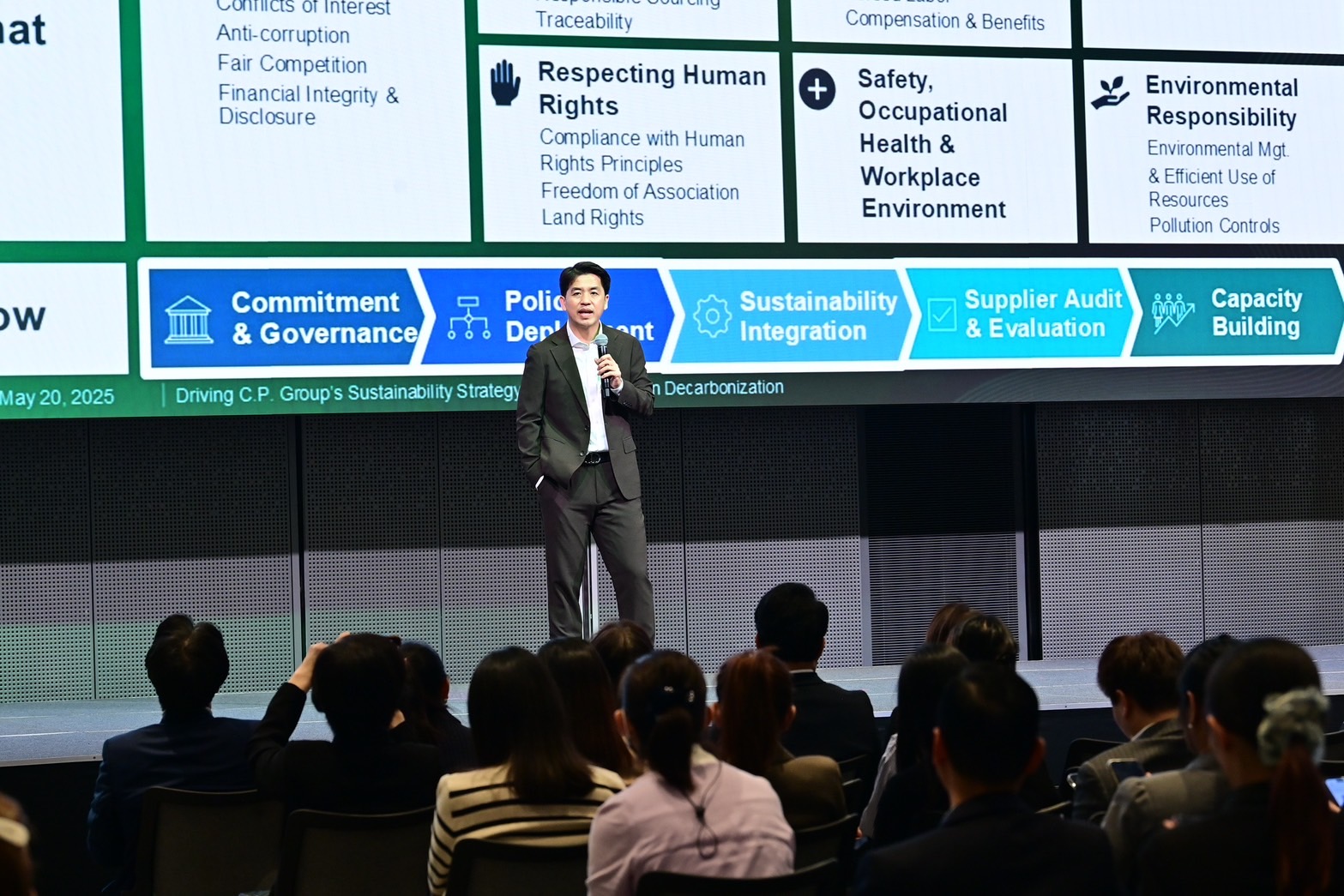 ดร.ธีระพล ย้ำว่า “การลดคาร์บอนไม่ใช่ภารกิจขององค์กรเพียงลำพัง แต่ต้องทำร่วมกับคู่ค้าและผู้มีส่วนได้ส่วนเสียทั้งระบบ โดยซีพีได้กำหนดแนวทางบริหารจัดการห่วงโซ่อุปทานอย่างรับผิดชอบ ที่เน้นการลดความเสี่ยง เพิ่มประสิทธิภาพ และสร้างความยั่งยืนในระยะยาว โดยยึด 3 แกนหลัก ได้แก่ Responsible Supply Chain Management, Supply Chain Decarbonization และ Human Rights”