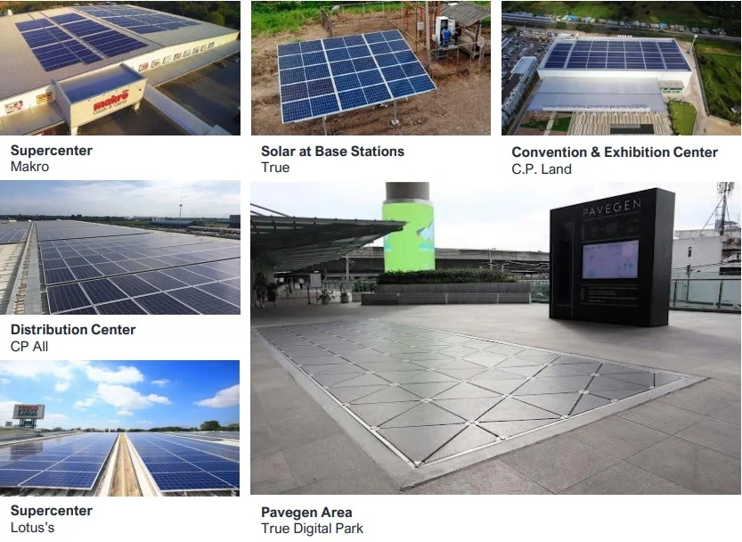 ตัวอย่างเช่น กลุ่มธุรกิจพืชครบวงจรของเครือซีพี ที่มีเป้าหมายการนำเทคโนโลยีมาใช้เพื่อพัฒนาปรับปรุงเมล็ดพันธุ์พืช โดยใช้เทคโนโลยีด้านพันธุกรรม เพื่อสร้างเมล็ดพันธุ์ที่ทนต่อโรคระบาด ทนต่อสภาพอากาศมากขึ้น ใช้น้ำน้อยลง และให้ผลผลิตมากขึ้น หรือการนำเทคโนโลยีมาใช้กับธุรกิจอื่น ๆ เช่น การนำปัญญาประดิษฐ์ มาใช้กับการจัดการร้านค้าของหน่วยธุรกิจค้าปลีก เช่นการจัดการตลาด การตั้งราคาที่เหมาะสม และการชูสินค้าที่จะเป็นสินค้าเด่นในร้านค้านั้น ๆ โดยธุรกิจค้าปลีกจะมีการนำเครื่องมือดิจิทัลมาใช้มากขึ้นโดยเน้นไปที่การผสมผสานช่องทางออฟไลน์และออนไลน์ (O2O) เพื่อรุกอี-คอมเมิร์ซ ขยายตลาดสู่อาเซียน