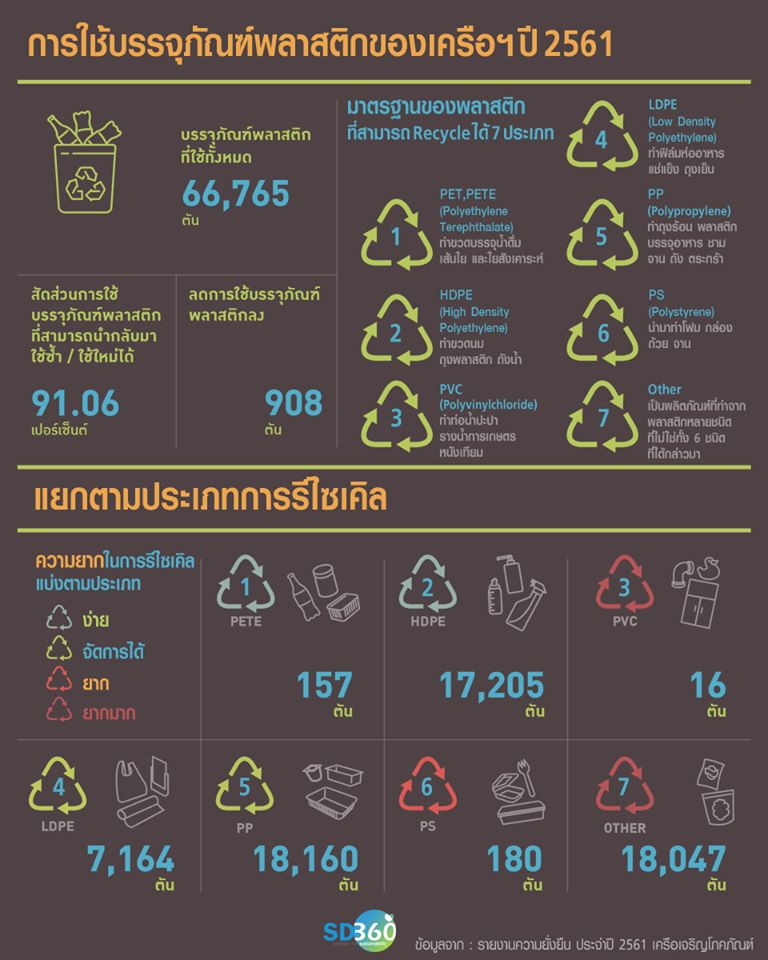 มีข้อมูลว่าตลอดปี 2562 แต่ละค้าปลีกทยอยลดให้ถุงพลาสติกต่อเนื่อง ตั้งแต่ 4 ธันวาคม 2561 ถึง 31 สิงหาคม 2562 พบว่า ผู้ค้าปลีกไทยกว่า 40 แห่งทั่วประเทศ ได้รณรงค์งดให้ถุงพลาสติก ผ่านกิจกรรมหลากหลายวิธี ตั้งแต่ไม่รับถุงพลาสติกได้คะแนนสะสมมูลค่า 1-3 บาท บริจาคเป็นเงินเข้าองค์กรการกุศลต่างๆ ซึ่งสามารถช่วยลดปริมาณการใช้ถุงพลาสติกหูหิ้วแล้วกว่า 2,000 ล้านใบ หรือประมาณ 5,755 ตัน คิดเป็นมูลค่ากว่า 400 ล้านบาท หรือร้อยละ 4.6 โดยปี 2563 ยังนำแคมเปญ “งดให้ งดรับ” ถุงพลาสติกหูหิ้วทุกวันมาใช้อย่างจริงจังซึ่งรวมถึงร้านเซเว่นฯของซีพีออลล์