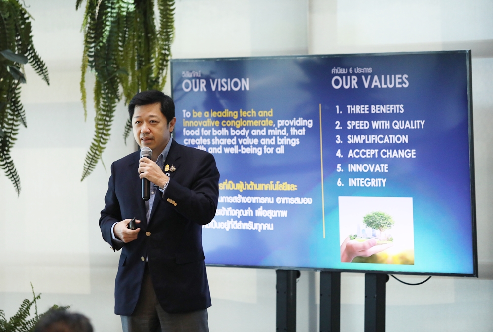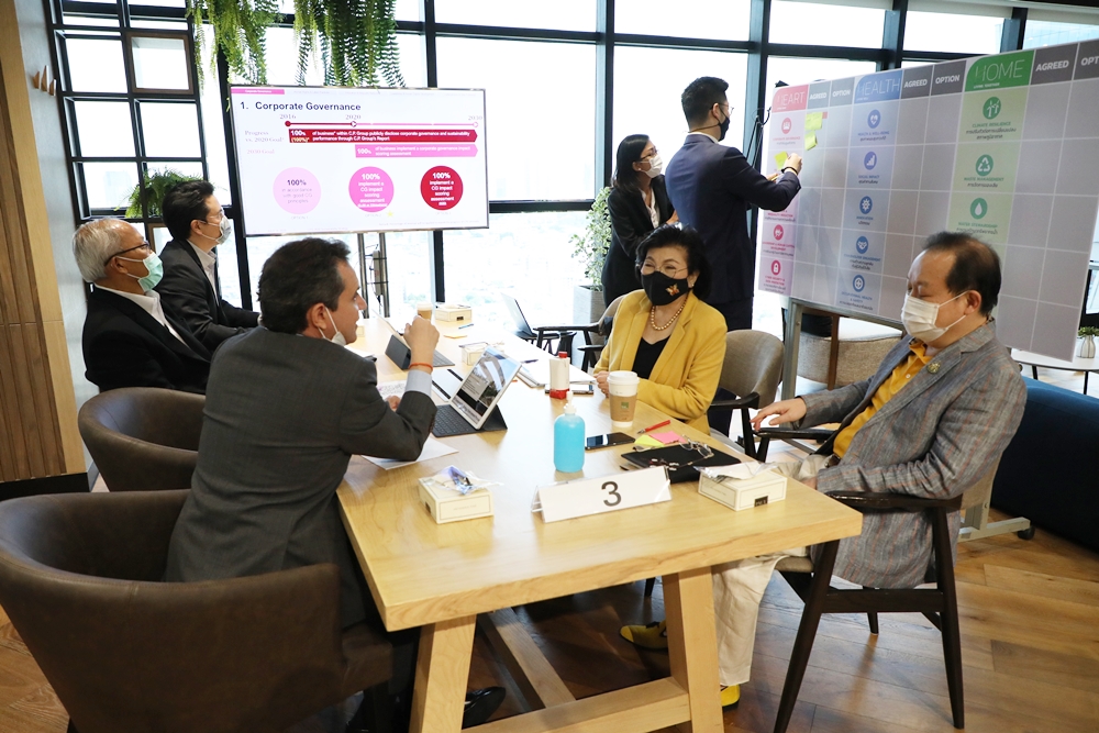 ประการแรก วันนั้นผู้บริหารระดับสูงของเครือฯล้วนเป็นเบอร์1ของกลุ่มธุรกิจ การประชุมมีความสำคัญที่คณะผู้บริหารได้ร่วมกันพิจารณาถึงเป้าหมายสำคัญในเรื่องที่เกี่ยวข้องกับเศรษฐกิจ สังคม สิ่งแวดล้อม ผู้มีส่วนได้ส่วนเสียของสังคมทั้งโลก เพราะกิจการเครือฯเกี่ยวข้องกับคนกว่า 3 พันล้านคน เกือบจะทุกภูมิภาค เกี่ยวข้องกับธุรกิจต้นน้ำ กลางน้ำ ปลายน้ำ ตลอดซัพพลายเชนเรามีผลกระทบต่อเรื่องการใช้ทรัพยากรของโลก