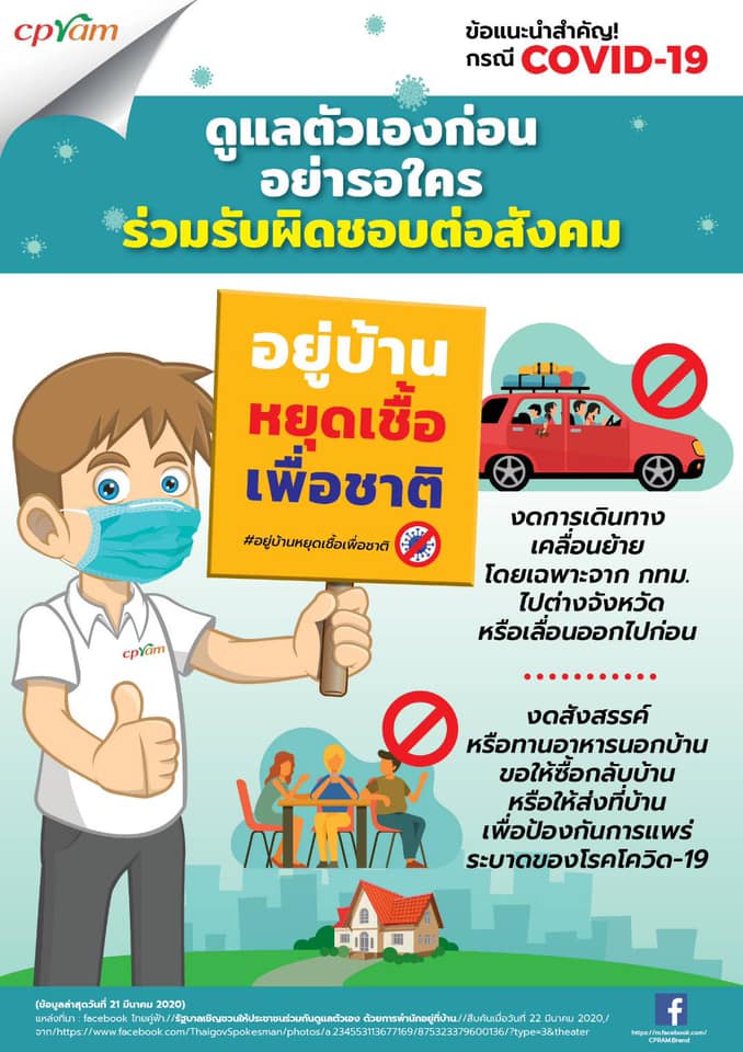 สำหรับเพื่อนๆชาวซีพีที่ต้องมาทำงานในส่วนของการผลิต การให้บริการลูกค้า คงต้องขอให้ผู้บังคับบัญชาดูแลเรื่องของความปลอดภัยในการเดินทาง หรือการหาที่พักที่สะดวกในการเดินทางใกล้โรงงานหรือร้านเพื่อลดความเสี่ยงจากเชื้อโควิด-19