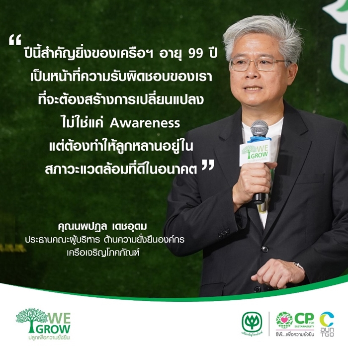จึงอยากเชิญชวนชาวซีพีได้มีส่วนร่วมกันคิดกันทำเพราะหากเราทำสำเร็จไม่เพียงช่วยโลกของเรายังเป็นการวางรากฐานใหม่ของเครือฯในการดำเนินกิจการในปีที่101เป็นต้นไปและยังช่วยให้องค์กรมีความยั่งยืนอยู่กับโลกใบนี้