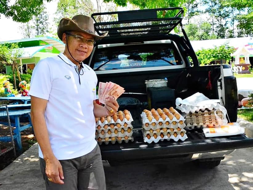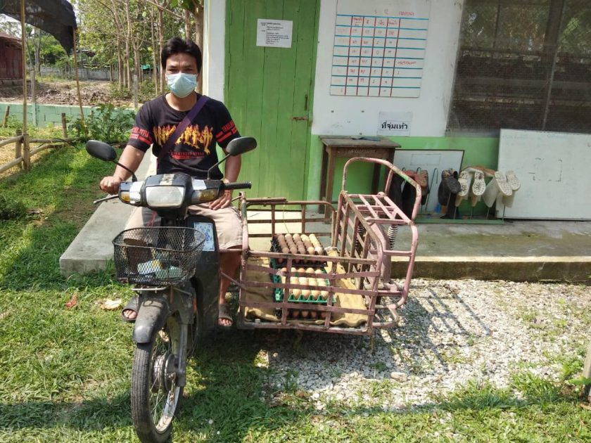 ตามมาดูการปรับตัวของโรงเรียนในโครงการเลี้ยงไก่ไข่ฯ ที่ต้องบริหารจัดการผลผลิตไข่ไก่ในช่วงปิดเทอม แม้จะไม่สามารถส่งผลผลิตเข้าโครงการอาหารกลางวันได้เพราะโรงเรียนปิด แต่ผลผลิตไข่ไก่และผลผลิตทางการเกษตรของโรงเรียน กลับเป็นแหล่งอาหารที่ช่วยอำนวยความสะดวกให้แก่ชุมชนในช่วงนี้ได้เป็นอย่างดี