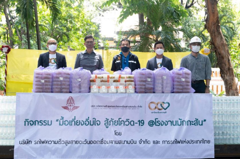 บริษัท รถไฟความเร็วสูงสายตะวันออกเชื่อมสามสนามบิน จำกัด นำโดย  คุณเหว่ยเหวย หวง ผู้อำนวยการฝ่ายปฏิบัติการ และคุณภัคพงศ์ พัฒนมาศ รองผู้อำนวยการฝ่ายปฏิบัติการ และหัวหน้าฝ่ายการตลาด และตัวแทนพนักงานบริษัท ร่วมกับการรถไฟแห่งประเทศไทย นำโดย ดร. ศิริพงศ์ พฤทธิพันธุ์ รองผู้ว่าการกลุ่มธุรกิจการซ่อมบำรุงรถจักรและล้อเลื่อน จัดกิจกรรม “มื้อเที่ยงอิ่มใจสู้ภัยโควิด 19 @โรงงานมักกะสัน” นำข้าวกล่องพร้อมรับประทานและน้ำดื่มจากซีพีแรม จำนวน 1,000 ชุด มอบให้บุคลากร และพนักงานที่ปฏิบัติงานในพื้นที่โรงงานมักกะสัน ของการรถไฟแห่งประเทศไทย เพื่อช่วยบรรเทาความเดือดร้อนจากสถานการณ์การแพร่ระบาดของเชื้อไวรัสโควิด 19 ที่เดินขึ้นในปัจจุบัน สร้างรอยยิ้ม และเป็นกำลังใจให้ทุกคนผ่านช่วงเวลาอันยากลำบากนี้ไปได้ด้วยกัน