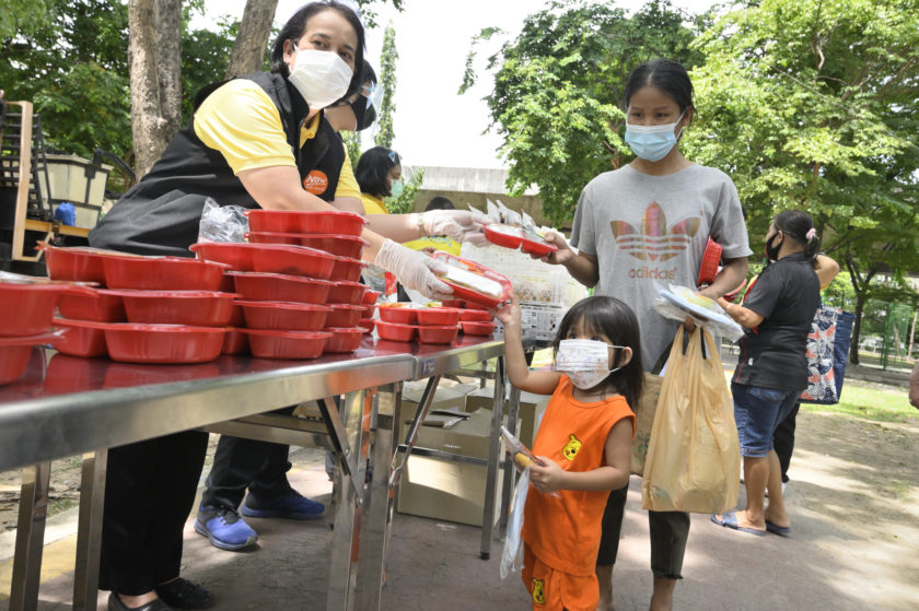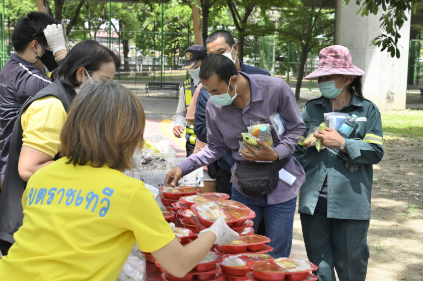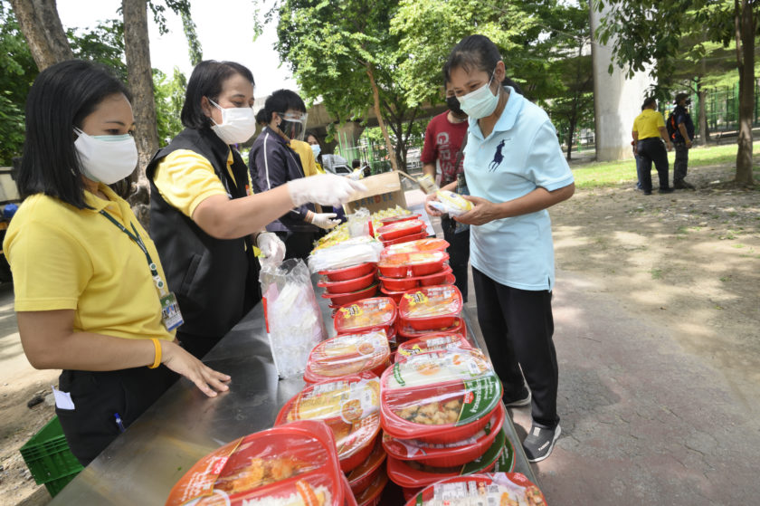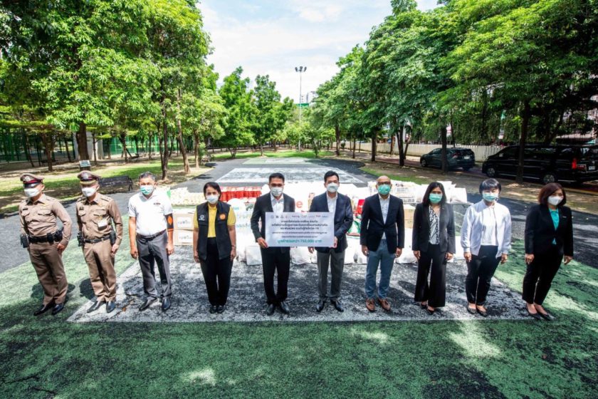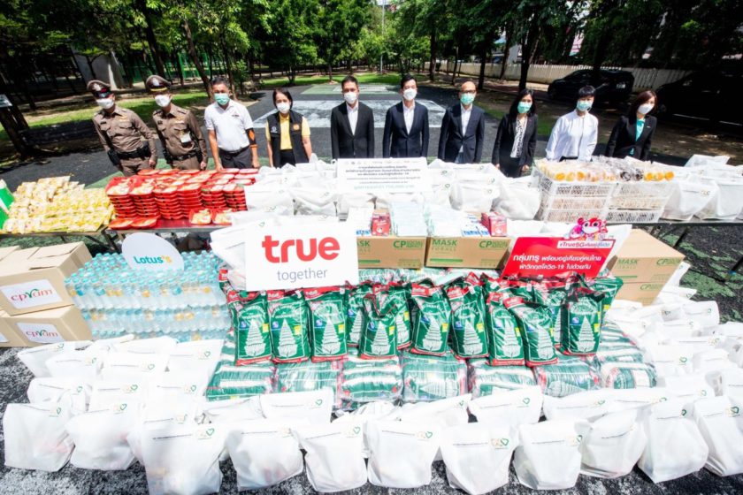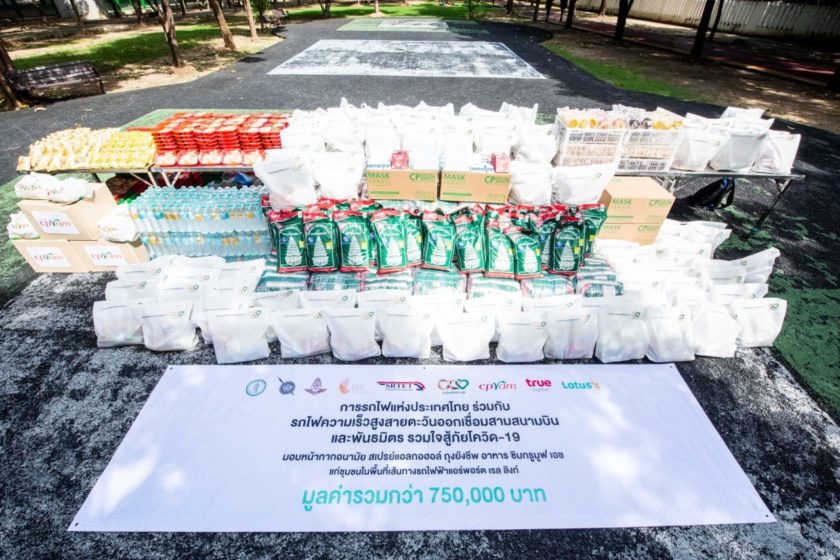 คุณอวิรุทธ์ ทองเนตร (ที่ 5 จากขวา) รองผู้ว่าการ กลุ่มอำนวยการ การรถไฟแห่งประเทศไทย พร้อมด้วย คุณสุเทพ พันธุ์เพ็ง (ที่ 5 จากซ้าย) กรรมการผู้อำนวยการใหญ่ บริษัท รถไฟฟ้า รฟท. จำกัด และ คุณภัคพงศ์ พัฒนมาศ (ที่ 4 จากขวา) รองผู้อำนวยการฝ่ายปฏิบัติการ และหัวหน้าฝ่ายการตลาด บริษัท เอเชีย เอรา วัน จำกัด และผู้บริหารจากองค์กรต่างๆ และบริษัทในเครือเจริญโภคภัณฑ์ อาทิ สำนักงานคณะกรรมการนโยบายเขตพัฒนาพิเศษภาคตะวันออก สหภาพแรงงานรัฐวิสาหกิจรถไฟแห่งประเทศไทย บริษัท ซีพีแรม จํากัด บริษัท ทรู คอร์ปอเรชั่น จํากัด (มหาชน) และ บริษัท เอก-ชัย ดีสทริบิวชั่น ซิสเทม จํากัด จัดกิจกรรม “เอเชีย เอรา วันและพันธมิตร รวมใจสู้ภัยโควิด – 19” ร่วมมอบหน้ากากอนามัย สเปรย์แอลกอฮอล์ ถุงยังชีพ อาหาร ซิมทรูมูฟ เอช มูลค่ารวมกว่า 750,000 บาท เพื่อแจกจ่ายให้แก่ชุมชนในพื้นที่เส้นทางรถไฟฟ้าแอร์พอร์ต เรล ลิงก์ โดยมีนางทวีพร โชตินุชิต (ที่ 4 จากซ้าย) ผู้อำนวยการ สำนักงานเขต ราชเทวี ผู้แทนจากสถานีตำรวจนครบาลพญาไท และสถานีตำรวจนครบาลดินแดงร่วมรับมอบ ณ สวนราชเทวีภิรมย์ กรุงเทพมหานคร เมื่อเร็ว ๆ นี้