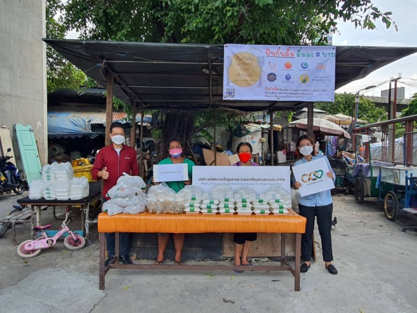 คุณสฤษดิ์ บอกอีกว่า นอกจากชุมชนย่านมักกะสันแล้ว บริษัทฯ ยังคำนึงถึงชุมชนพนักงานและครอบครัวในโรงงานมักกะสันของการรถไฟด้วย โดยได้นำข้าวสารอาหารแห้ง ไข่ไก่ 300 ถาดไปสนับสนุนโรงครัวชุมชน และบ้านพักพนักงานรถไฟ และยังมีการจัดกิจกรรม “มื้อเที่ยงอิ่มใจ สู้ภัยโควิด-19” ร่วมกับการรถไฟแห่งประเทศไทย นำอาหารปรุงสุกพร้อมรับประทานจำนวน 1,000 กล่องไปแจกจ่าย และร่วมรับประทานกับพนักงานในโรงงานฯ