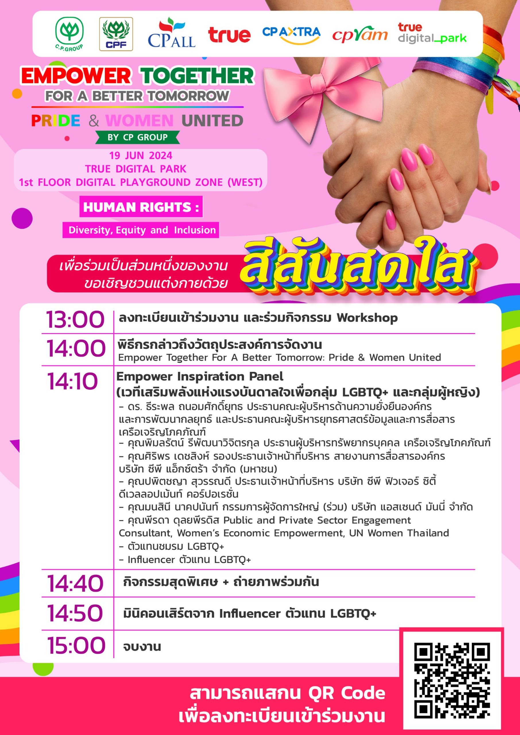 เชิญชวนคน CP รวมพลังแสดงออกเพื่อความเสมอภาคของทุกเพศในงาน Empower Together For A Better Tomorrow: Pride & Women United