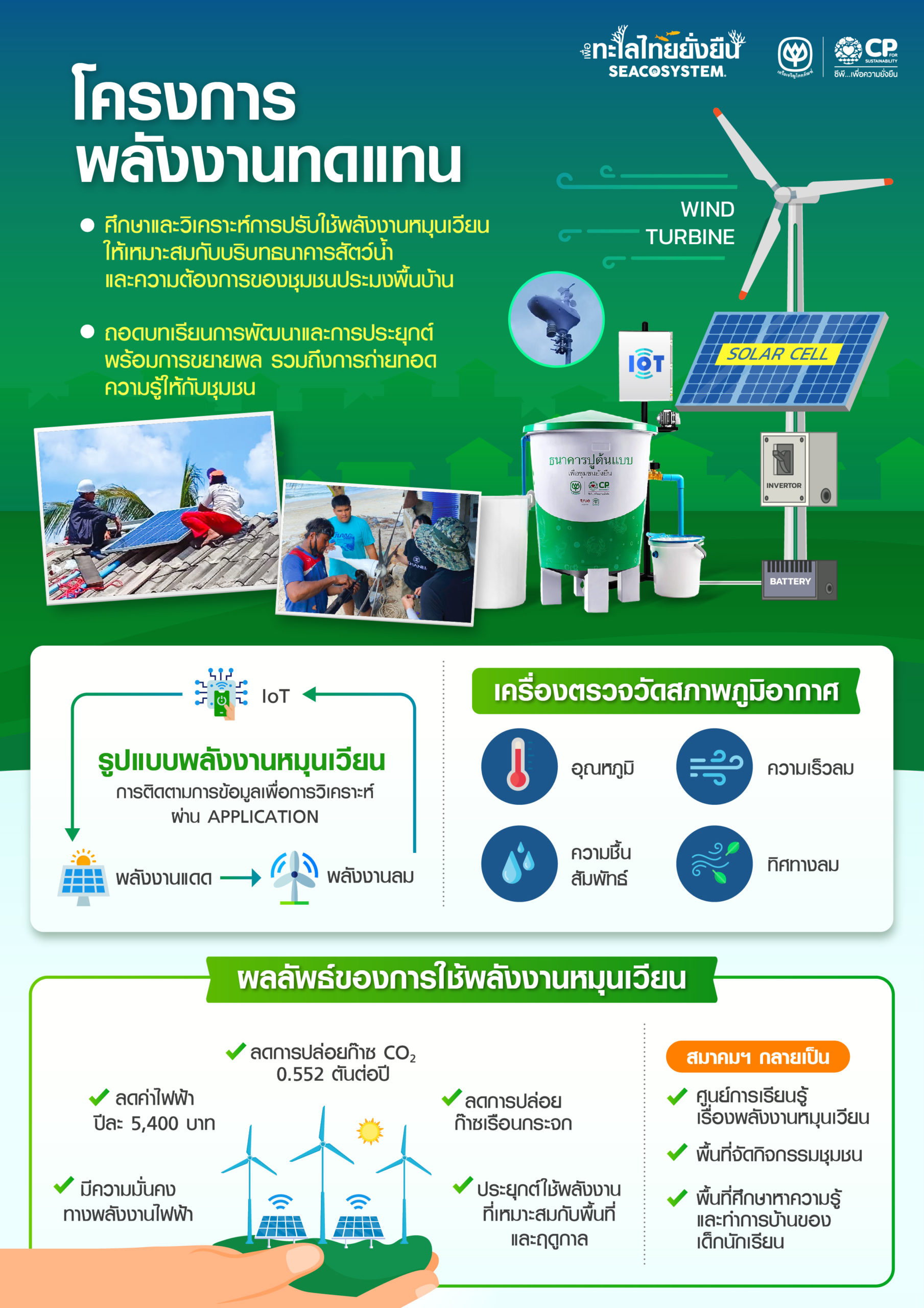 ชุมชนประมงพื้นบ้าน อ.หัวไทร จ.นครศรีธรรมราช ได้ตระหนักและนำแนวทาง “พลังงานทดแทน พลังงานหมุนเวียน” จากพลังงานแสงอาทิตย์และลม มาทำการศึกษา ติดตาม และวิเคราะห์การปรับใช้พลังงานหมุนเวียนให้เหมาะสมกับบริบทและความต้องการของชุมชนได้อย่างดีจนประสบผลสำเร็จ สามารถที่นำมาพัฒนาและการประยุกต์อย่างต่อเนื่อง อีกทั้งพร้อมที่จะนำไปขยายผล รวมถึงการถ่ายทอดความรู้แก่ชุมชนและพื้นที่ใกล้เคียงต่อไปในอนาคต