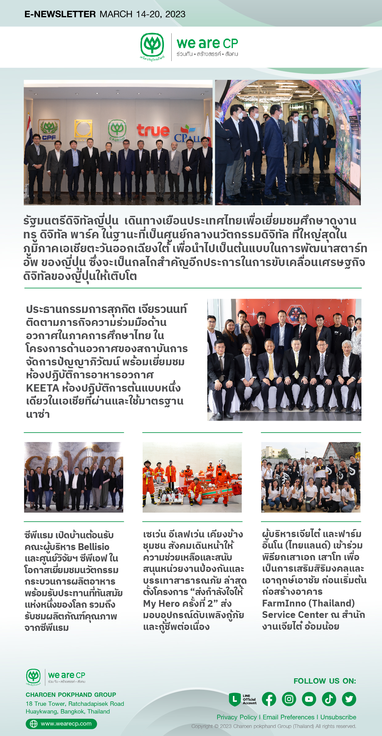 ติดตามข่าวสารภายในเครือเจริญโภคภัณฑ์และบริษัทในเครือ