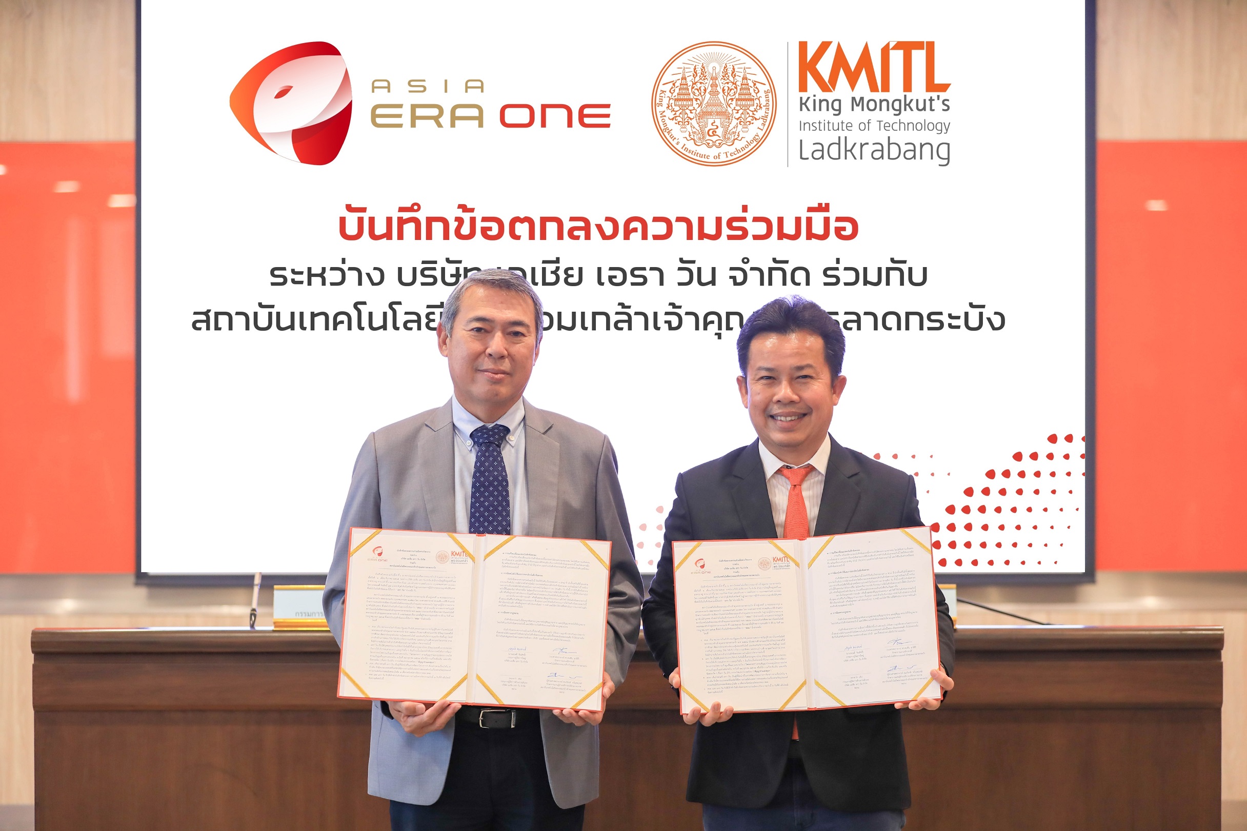 กรุงเทพมหานครฯ – บริษัท เอเชีย เอรา วัน จำกัด ผู้ร่วมลงทุนโครงการรถไฟความเร็วสูงเชื่อมสามสนามบิน และปัจจุบันเป็นผู้ให้การสนับสนุนการเดินรถไฟฟ้าแอร์พอร์ต เรล ลิงก์ ภายใต้การกำกับดูแลของ บริษัท รถไฟฟ้า ร.ฟ.ท จำกัด ร่วมลงนามในบันทึกข้อตกลงความร่วมมือ หรือ MOU ระหว่างบริษัท เอเชีย เอรา วัน จำกัด ร่วมกับ สถาบันเทคโนโลยีพระจอมเกล้าเจ้าคุณทหารลาดกระบัง (สจล.) ซึ่งเป็นสถาบันการศึกษาชั้นนำของประเทศไทย ที่มีวิสัยทัศน์ในการมุ่งพัฒนาประเทศด้วยวิทยาศาสตร์และเทคโนโลยี การสร้างสรรค์งานวิจัย และนวัตกรรมสู่สังคมโลก โดยมีเป้าหมายเพื่อสนับสนุนให้นักศึกษา บุคลากร และคณาจารย์ของสถาบันฯ ให้ได้รับความสะดวกสบายจากการโดยสารรถไฟฟ้า แอร์พอร์ต เรล ลิงก์ มากขึ้น อาทิ การพัฒนาจุดจอดรถโดยสารไฟฟ้าเพื่ออำนวยความสะดวกให้แก่บุคลากร เพื่อเป็นการสนับสนุนระบบขนส่งสาธารณะเชิงรุก และยังมีการส่งเสริมการจัดกิจกรรมของนักศึกษาในพื้นที่บริเวณสถานีรถไฟฟ้า แอร์พอร์ต เรล ลิงก์ การประชาสัมพันธ์ข้อมูลข่าวสารอันเป็นประโยชน์จากบริษัท เอเชีย เอรา วัน ตลอดจนสนับสนุนความร่วมมือด้านวิชาการ การพัฒนาบุคลากร และการแลกเปลี่ยนความรู้ทางนวัตกรรม ด้านการพัฒนาระบบราง ผ่านกิจกรรมต่าง ๆ อันจะนำมาซึ่งประโยชน์ร่วมกันทั้งสองฝ่าย