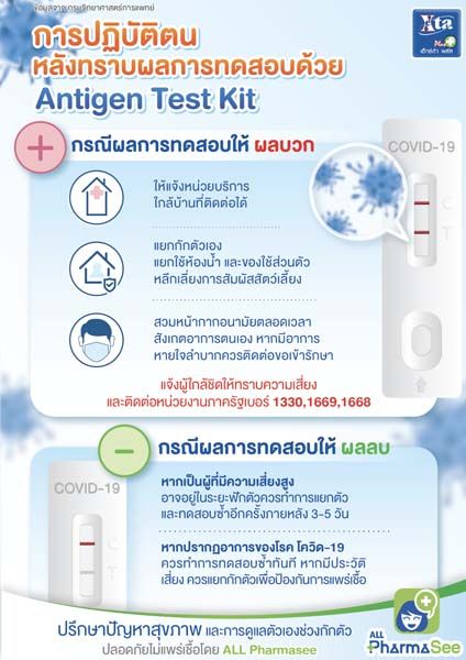 เอ็กซ์ต้า พลัส ร้านยาเพื่อชุมชน จะมีเภสัชกรประจำร้านคอยให้คำปรึกษา แนะนำวิธีการใช้งานที่ถูกต้องและปลอดภัยในการตรวจเชื้อ และยังมีเภสัชกรที่คอยให้คำปรึกษาฟรี 24 ชั่วโมง ผ่านแอปพลิเคชัน ALL PharmaSee เกี่ยวกับการใช้ Antigen test kit และปัญหาสุขภาพด้านอื่นๆ และหากต้องการยาสามัญประจำบ้าน สามารถสั่งผ่านแอปพลิเคชันนี้ได้เช่นเดียวกัน