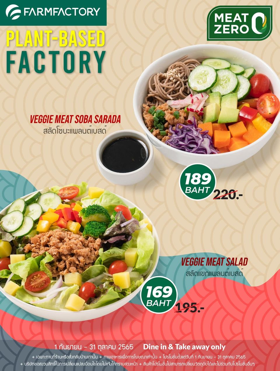 ฟาร์มแฟคทอรี (FARMFACTORY) ธุรกิจสลัดและเครื่องดื่ม จับมือ “MEAT ZERO”ผู้นำด้านนวัตกรรมเนื้อจากพืช (Plant-Based) จาก CPF จัดแคมเปญ ‘Plant Based Factory’ พร้อมเปิดตัว 2 เมนูใหม่ โดยใช้วัตถุดิบหลัก คือ เนื้อบดจากพืช ที่มีสารอาหารครบถ้วนไม่ต่างจากเนื้อสัตว์จริง มารังสรรค์เป็นเมนูล่าสุดสูตรเฉพาะของร้าน คลุกเคล้าเข้ากับน้ำสลัด ช่วยเพิ่มเสน่ห์ในการทานสลัดยิ่งขึ้น เจาะกลุ่มผู้บริโภคยุคใหม่ที่ให้ความสำคัญต่อสุขภาพ ทั้งสายวีแกน (Vegan) มังสวิรัติ (Vegetarian) และมังสวิรัติยืดหยุ่น (Flexitarian)